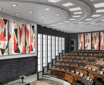 Print on acoustic panels to create faux wood beams or dimensional faux wood panels where sound control is needed.