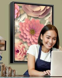 Ask about our gallery wrapped canvas! Custom sizes, floater frame options, & more. Scan for more canvas!
