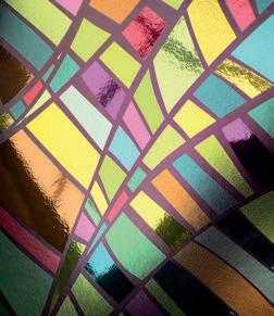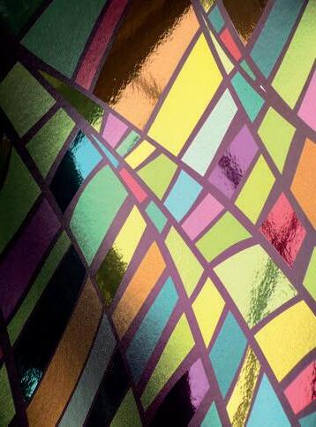 Put Pop Gloss over window film to change colors from a frosted look to a glossy stained glass effect.