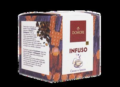 Pure Single Origin Sambirano cocoa bean grounds, with no added flavours or sugar, all in practical single-dose filter bags, for an infusion with an unmistakable aroma COCOA GRUÈ INFUSIONS