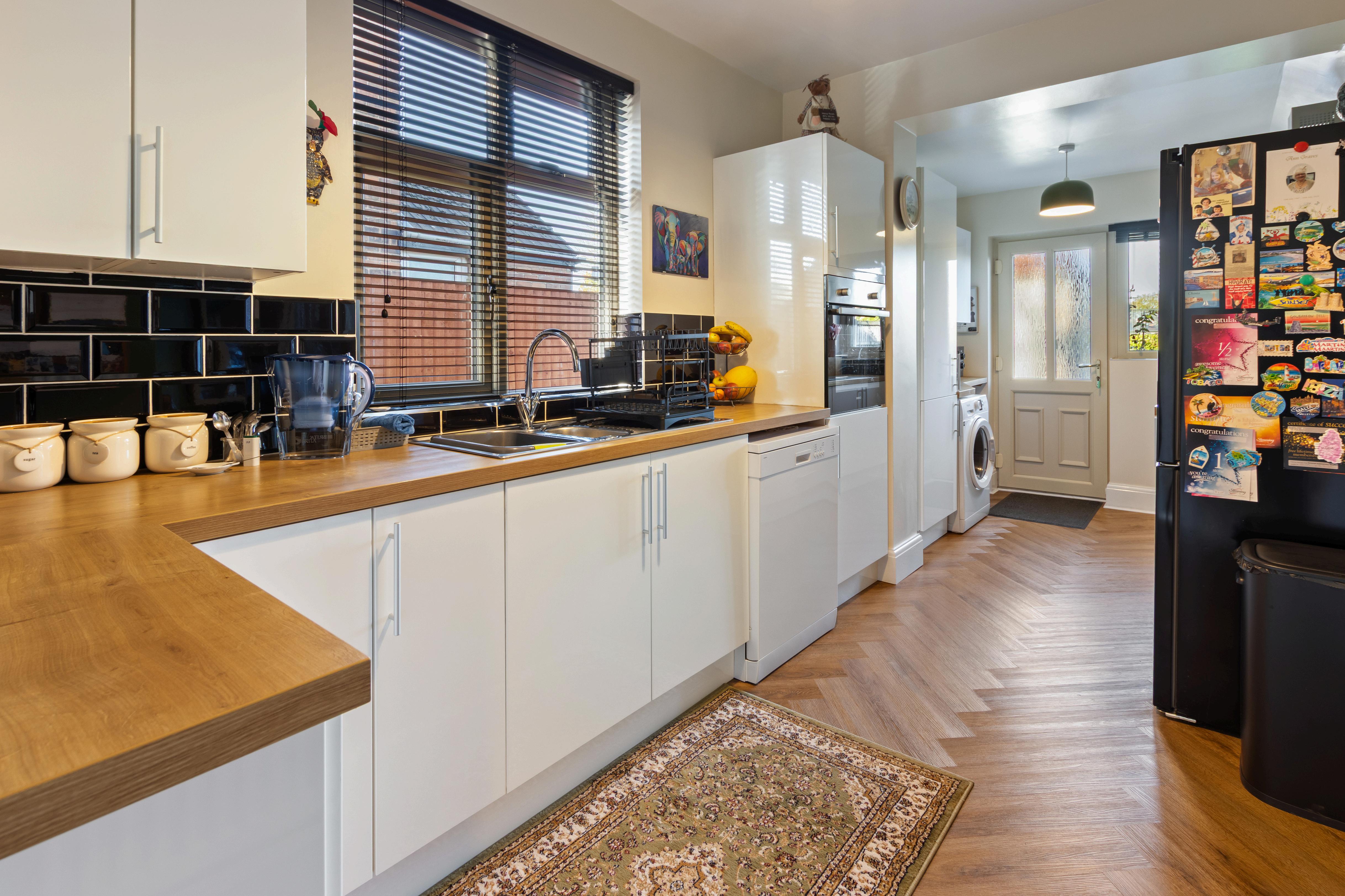 The welcoming entrance hall leads to a cosy lounge with a feature bay window, creating a light and inviting space to relax. To the rear, the bright and spacious dining room enjoys French doors opening directly onto the garden, while the open-plan layout into the kitchen gives a fantastic sense of flow, perfect for family life and entertaining.