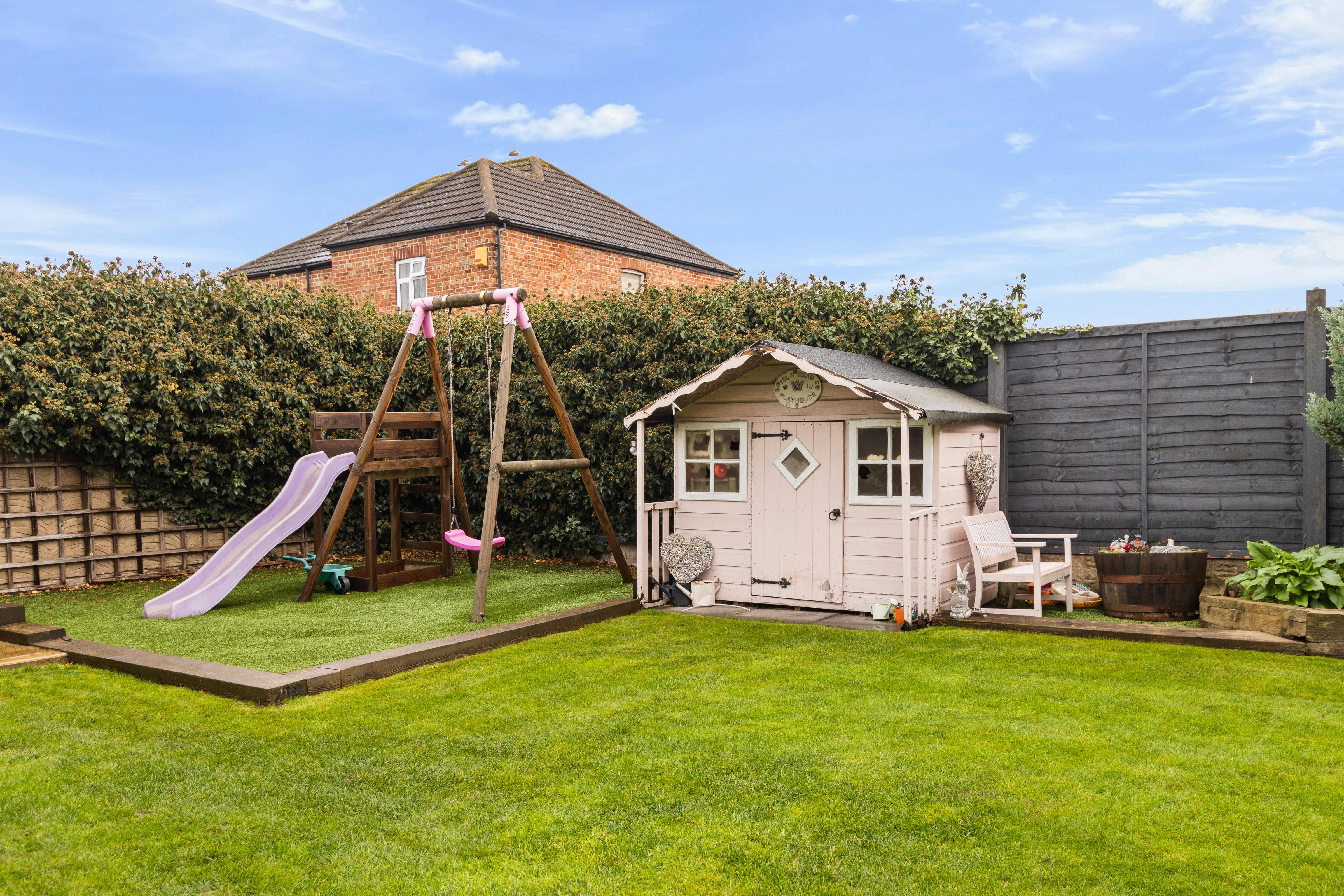 A blockpaved driveway provides offstreet parking and leads to the integral garage. The rear garden is ideal for entertaining, featuring a spacious decked patio and a generous lawn, complemented by hard standing for a shed and summer house. The plot is securely enclosed, creating a private and versatile outdoor space.
