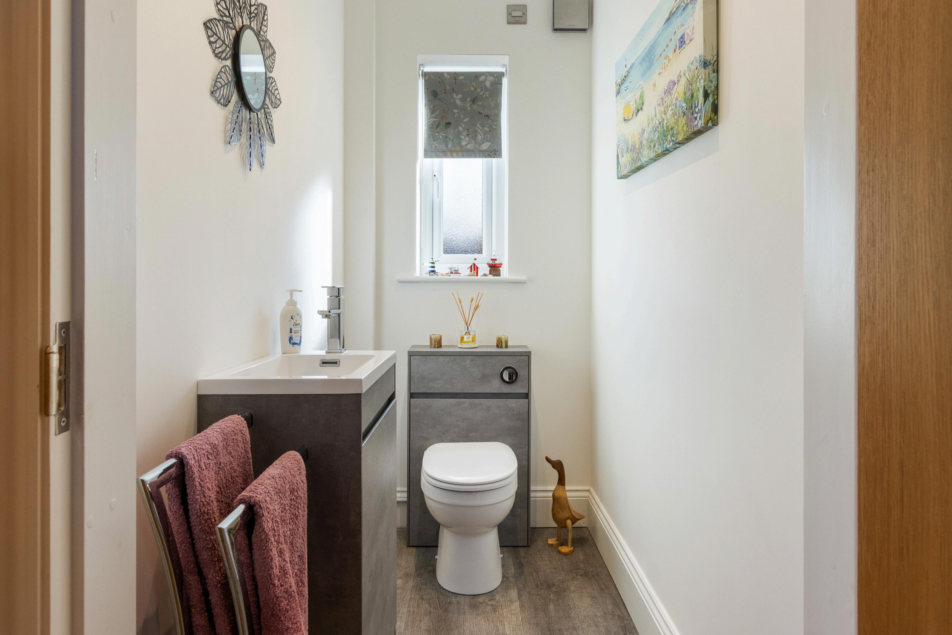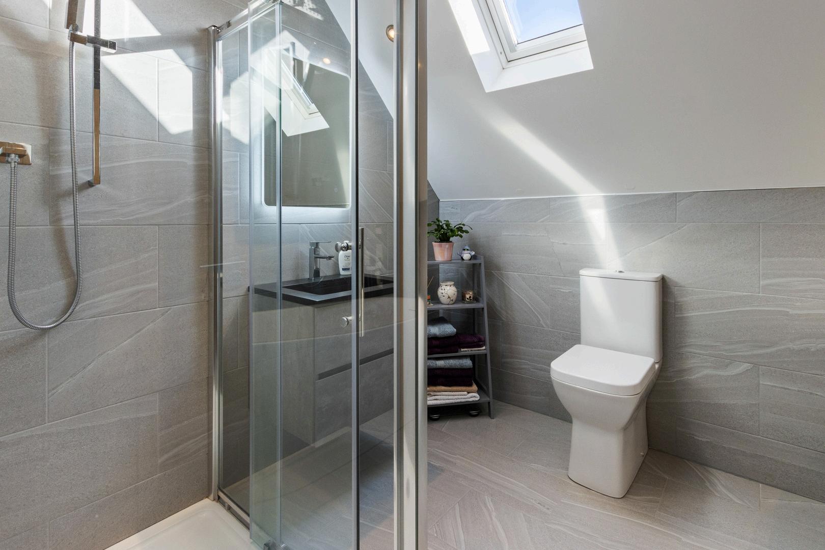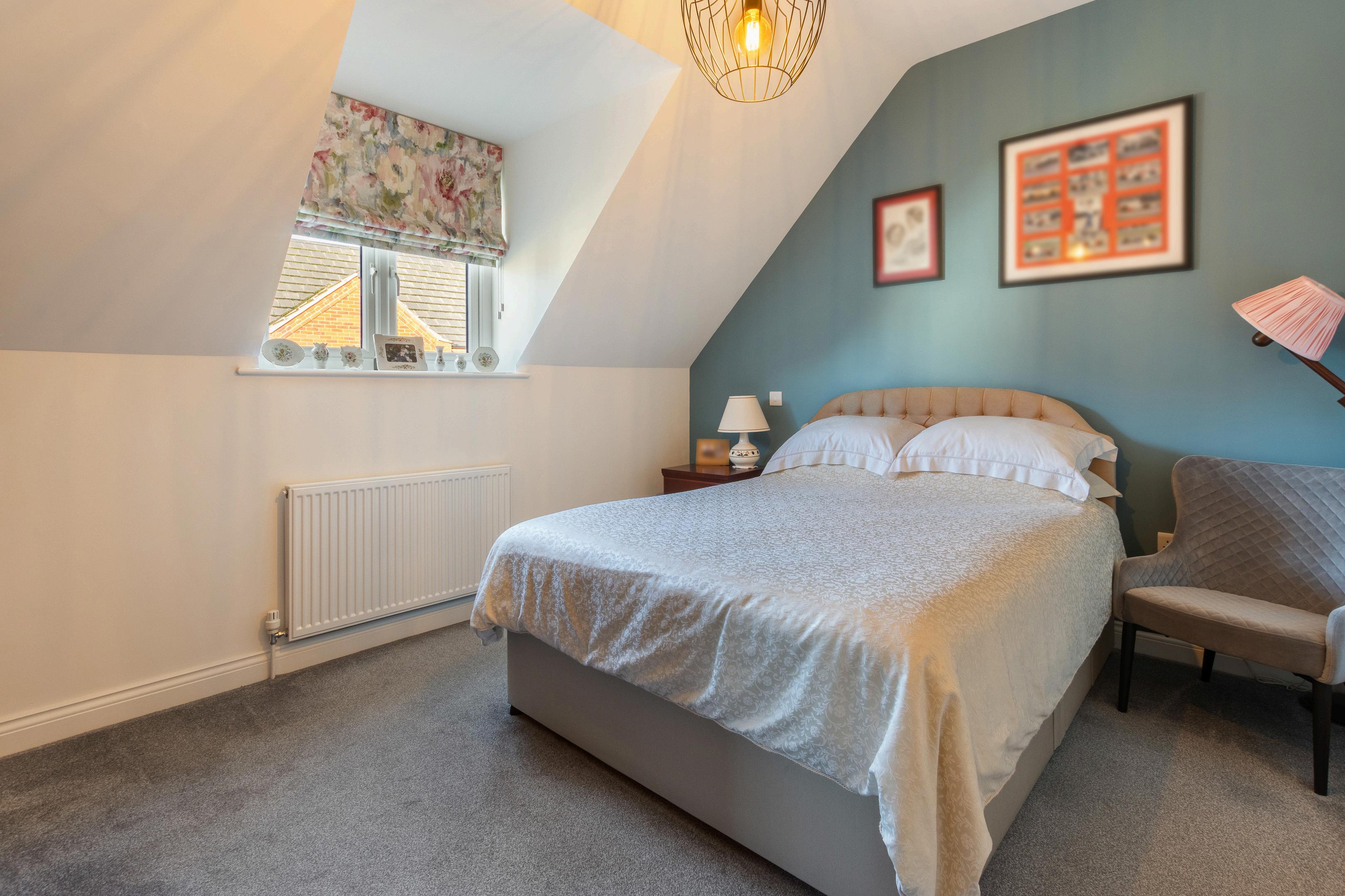 Upstairs offers four well-proportioned bedrooms including a principal suite with dressing room and ensuite, plus a contemporary family bathroom with freestanding bath and separate shower. The layout provides both comfort and flexibility for modern family living.