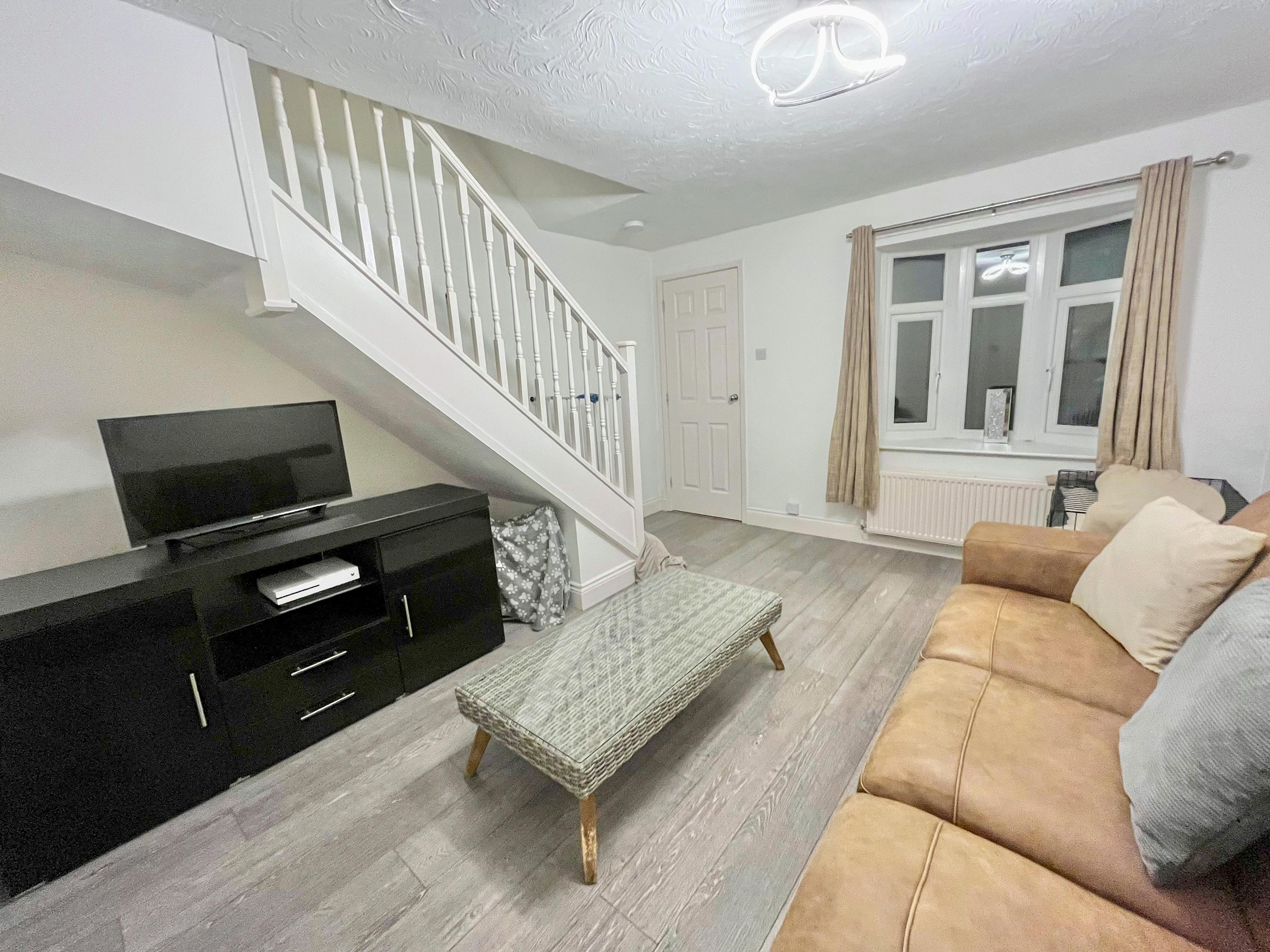 Ascending to the first floor, this fabulous home offers two well-presented bedrooms. The main bedroom spans the full width of the property and benefits from a rear-facing outlook, while the second bedroom overlooks the front garden and includes built-in storage with sliding mirrored doors and an airing cupboard. Leading back off the landing, the three-piece bathroom is fitted with a clean white suite, comprising a panelled bath with shower above, a pedestal hand wash basin and a low-level W.C.