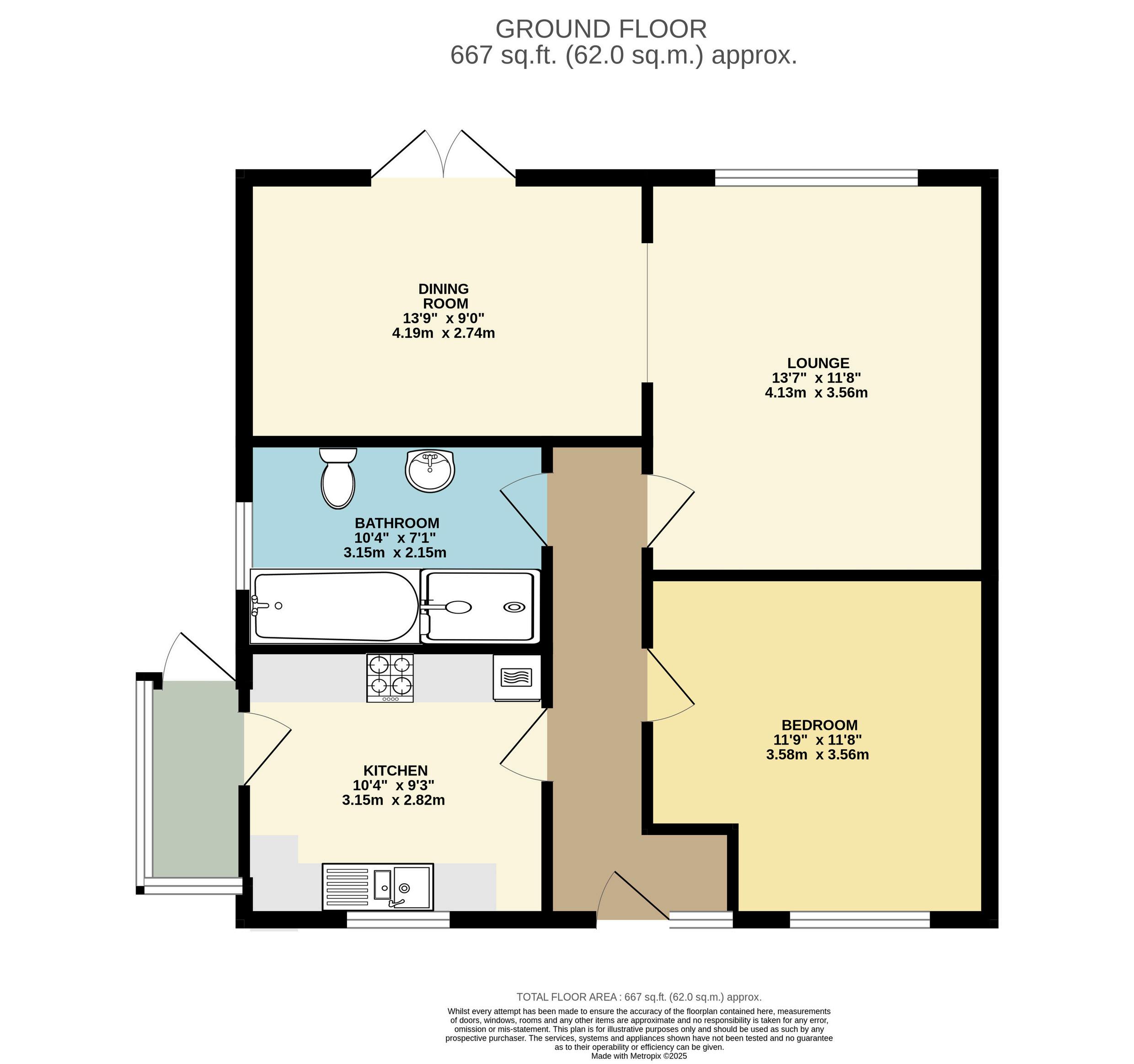 Attractive One Bedroom Semi-Detached Bungalow with Garage and Generous Garden