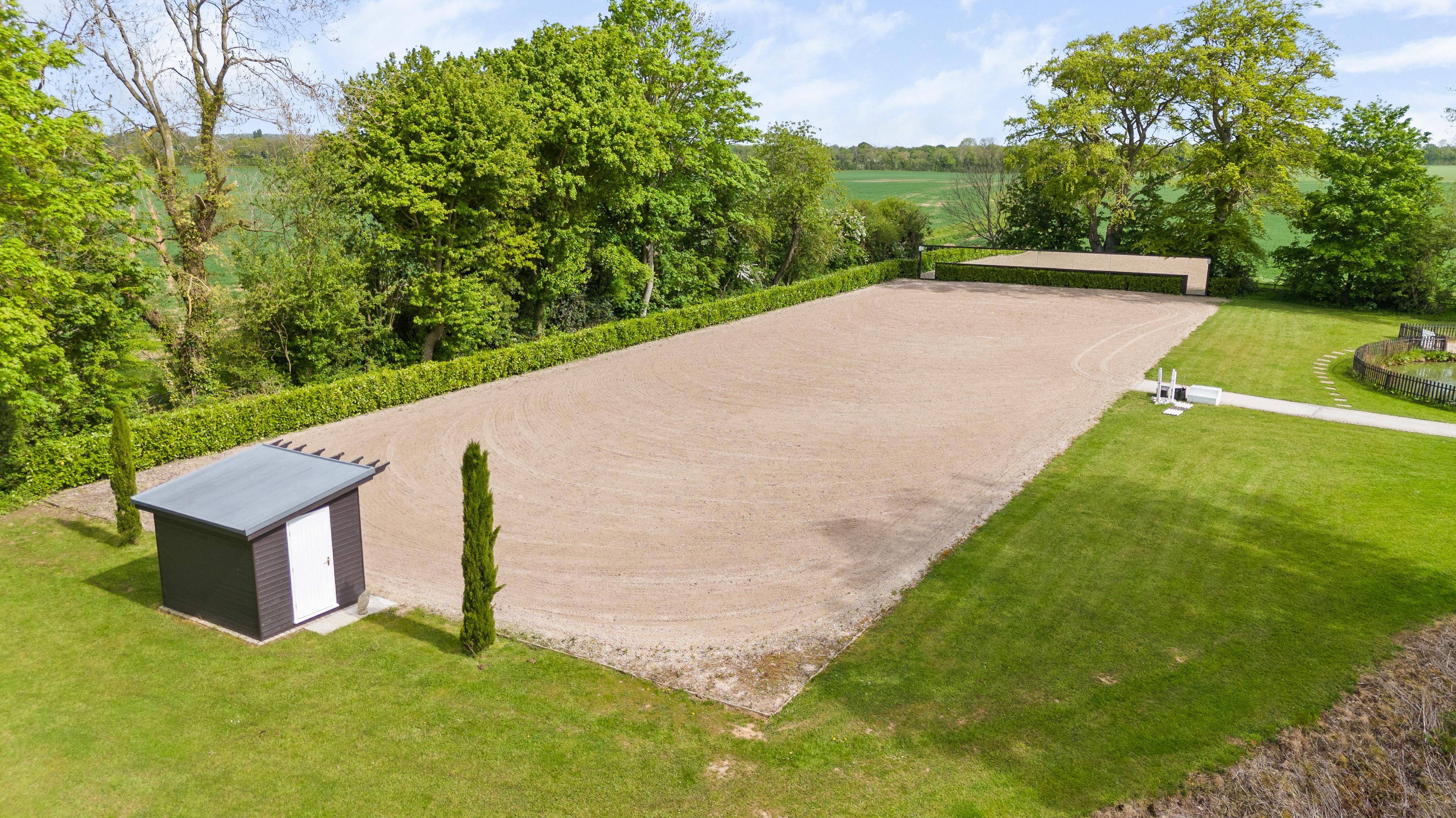 Thecurrentownerhasriddentoaninternationalcompetitivestandardanddressage is her chosen specialty therefore a 20m x 60m international standard indoor dressagearenahasbeenbuilt.Thearenahasanequestrianx surface,fittedtraining mirrors, a Sonos sound system with Wi-Fi connection and benefits from an irrigationsystem,plantroomandviewingplatform.
