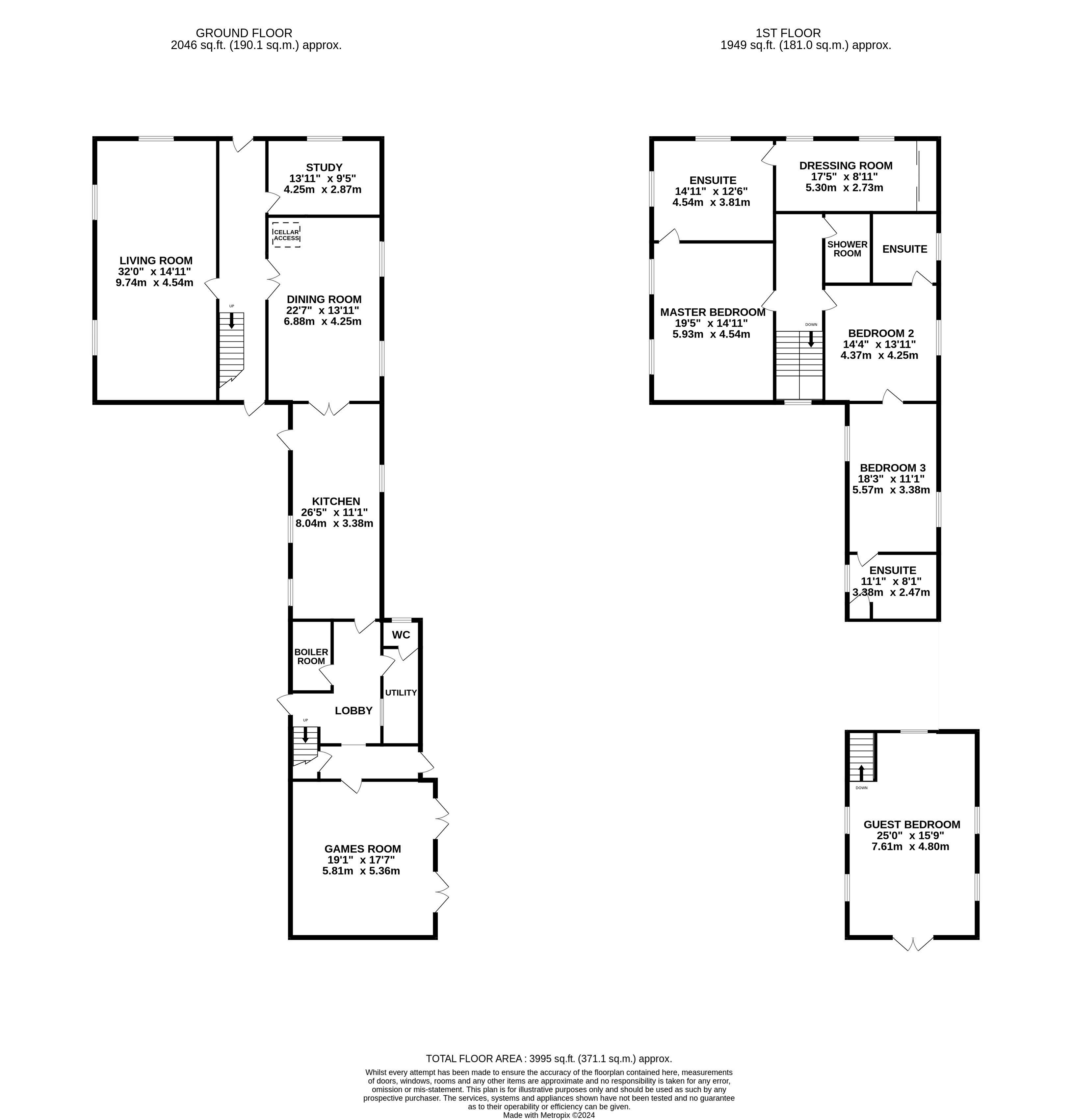 Thelobbyhasaglazeddoortothepatioandasecondstaircaseleadingdirectlyinto theguestbedroom.Thisgeneroussuitestyledroomisperfectforwhenguestsstay providing plenty of space for a comfortable sitting area, beautifully presented and hasglazeddoorsopeningtoabalconywithexternalstepstothegroundfloor.
