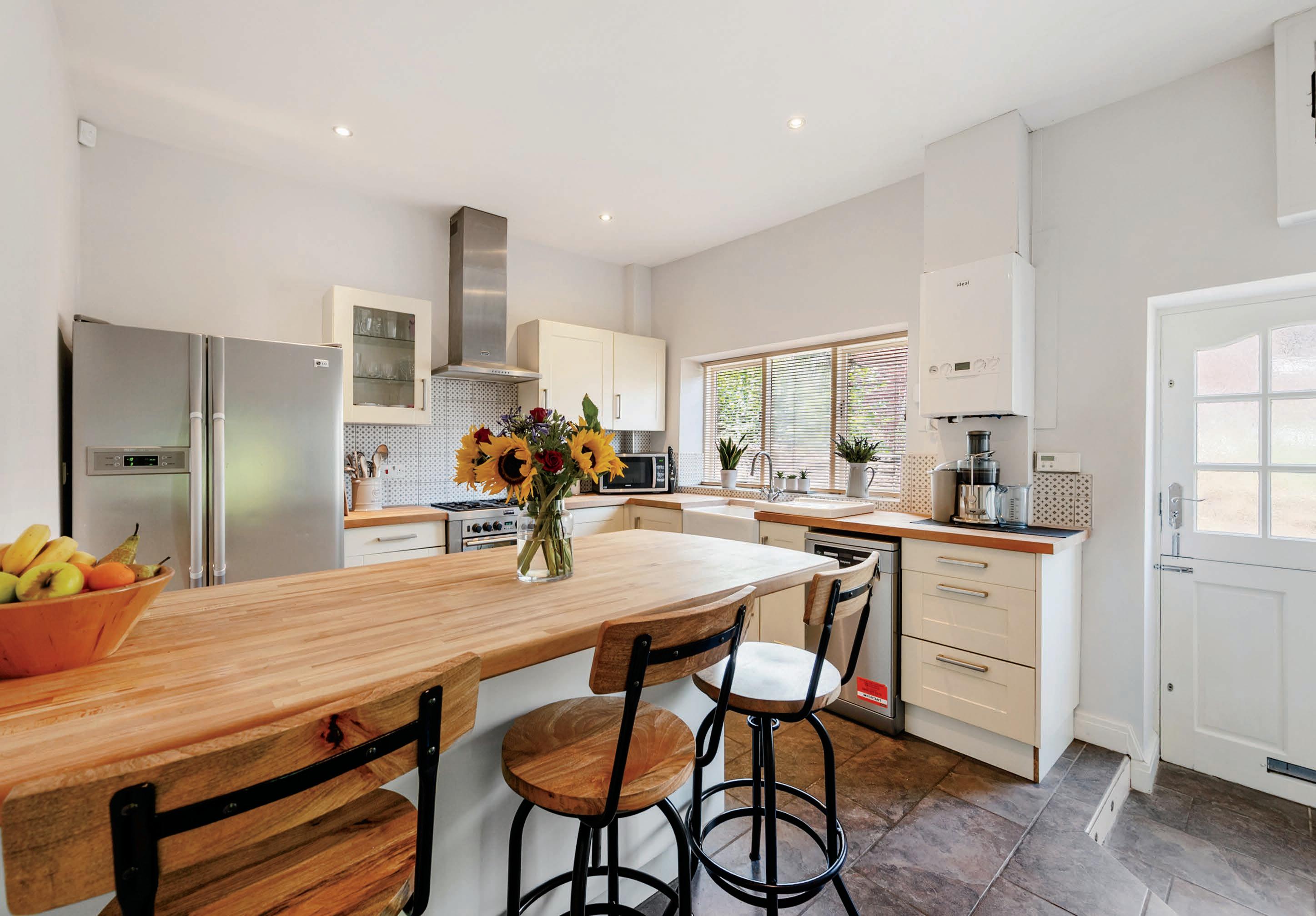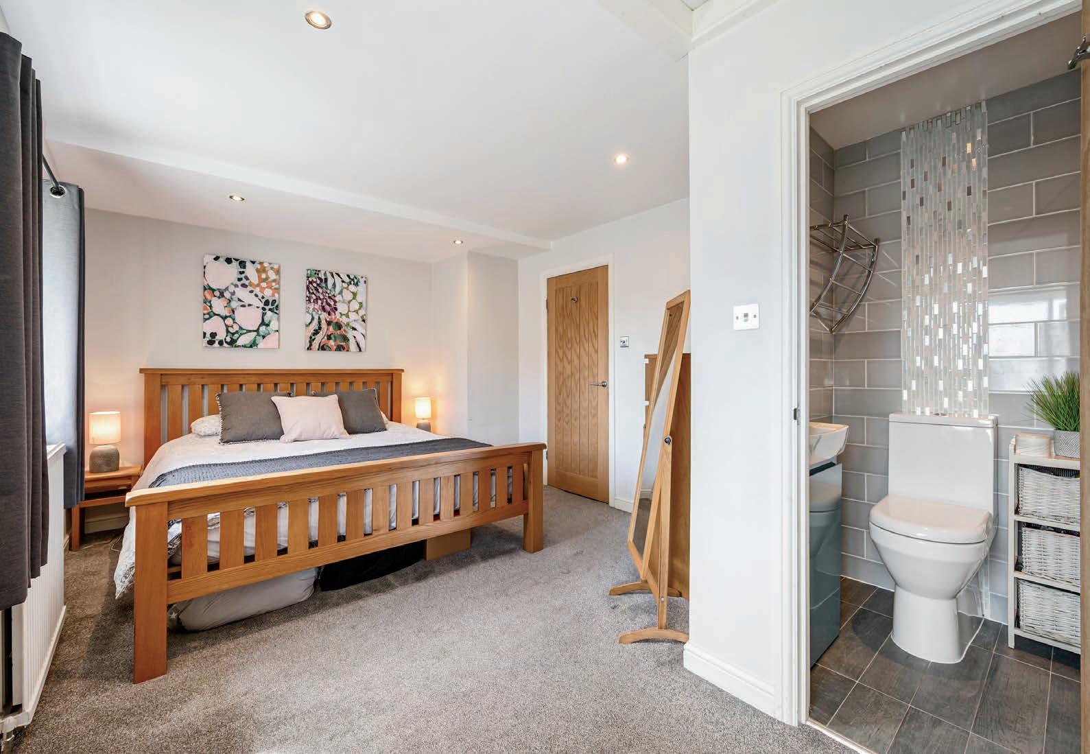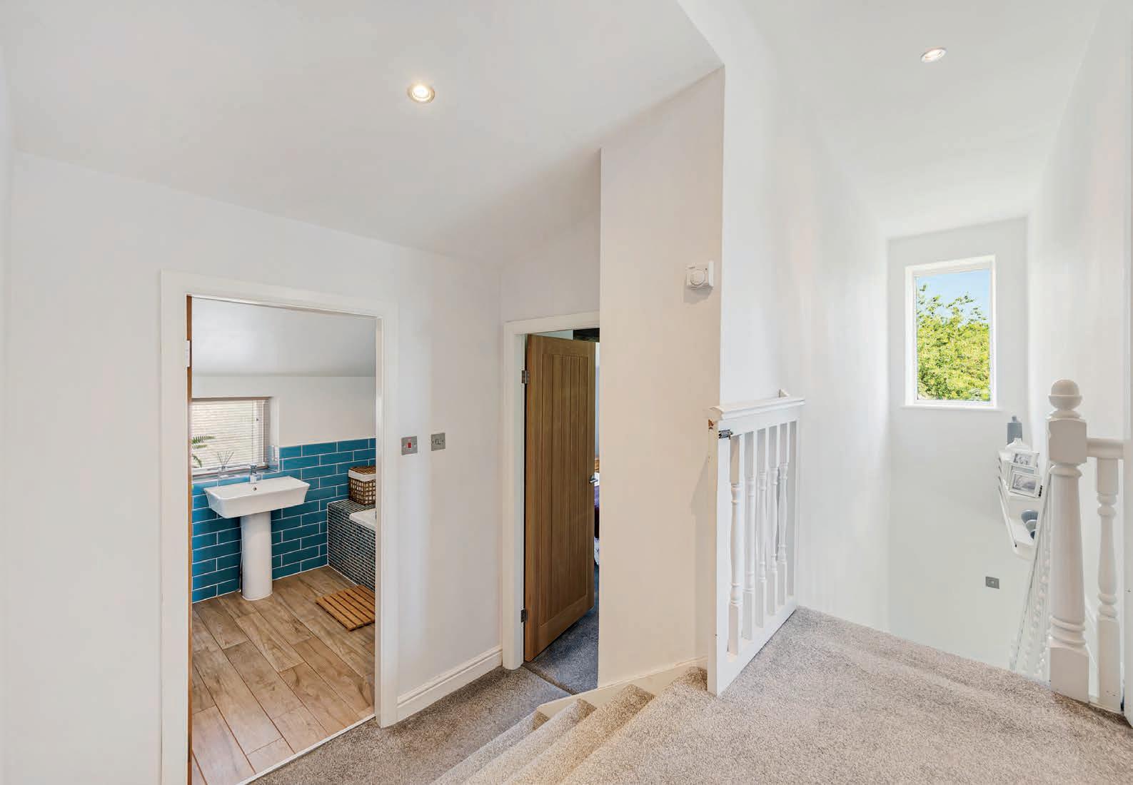 Adjacent to the kitchen on a split level is a separate dining room differentiating the space from the lounge and kitchen, ideal for hosting dinner parties or family gatherings. The dining room’s generous proportions and charming décor make it a wonderful space with the focal point of the room the wood burning stove. For added convenience, the ground floor also features a separate utility and downstairs WC, enhancing the practicality for family and guests alike.