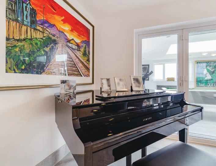 A leisure suite offers an impressive addition to the home with two sets of windows at the rear commanding stunning cross valley views; the room has a glass lantern to the ceiling ensuring fantastic levels of natural light whilst doors at the side open directly into the garden. The room has a bespoke bar with granite surfaces that incorporates a sink, has base cupboards, an ice making machine and a three door fridge cabinet and open fronted shelving with a mirrored glass backdrop. A granite island conceals open fronted glass shelving and extends to a six-seater breakfast bar.