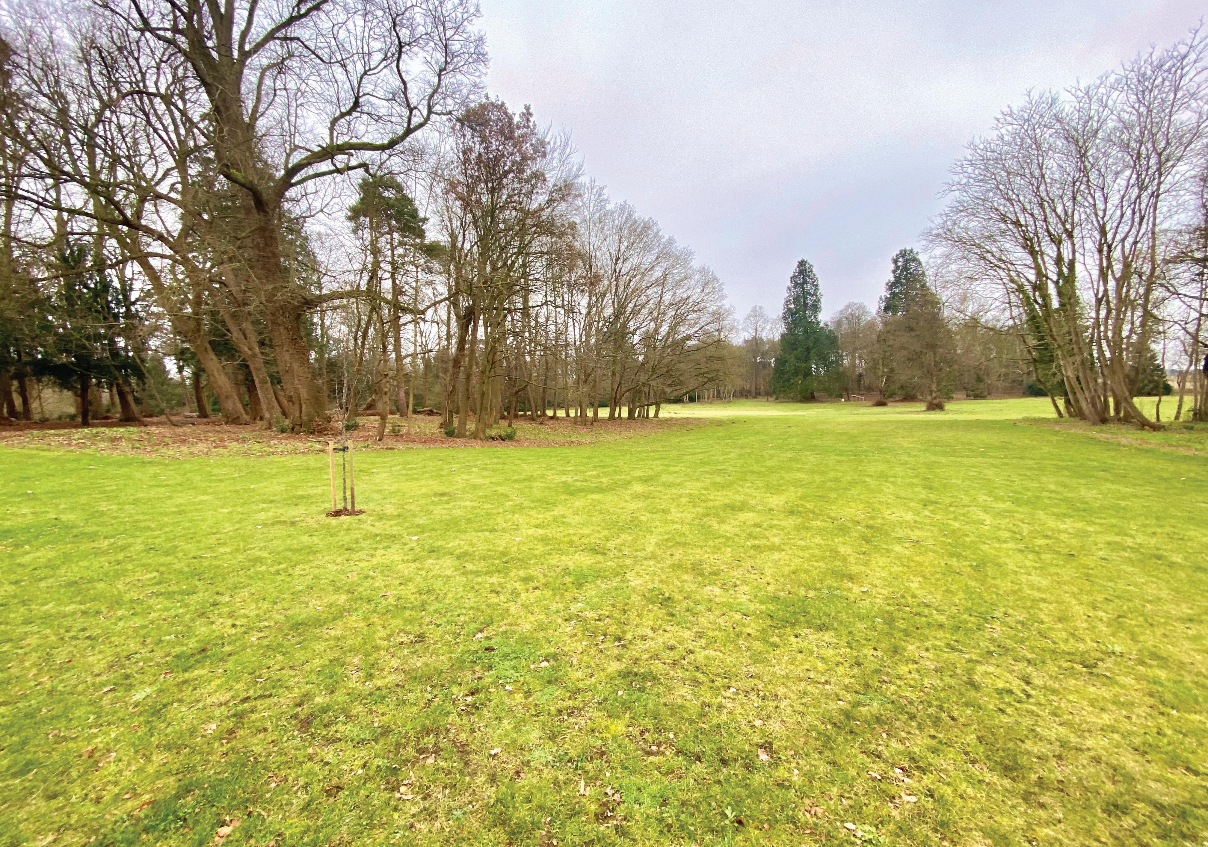 The private gardens to the rear and side extend over a quarter of an acre, enclosed by open post-and-rail fencing to enjoy stunning views of the surrounding parkland and woodland, with close-boarded fencing providing privacy. A patio area offers a perfect space for outdoor dining, while the lawn is ideal for recreation. Additionally, the front and side grassed areas, which extend into the cul-de-sac and are owned by the property, present potential for a carport or garage, subject to planning approval.