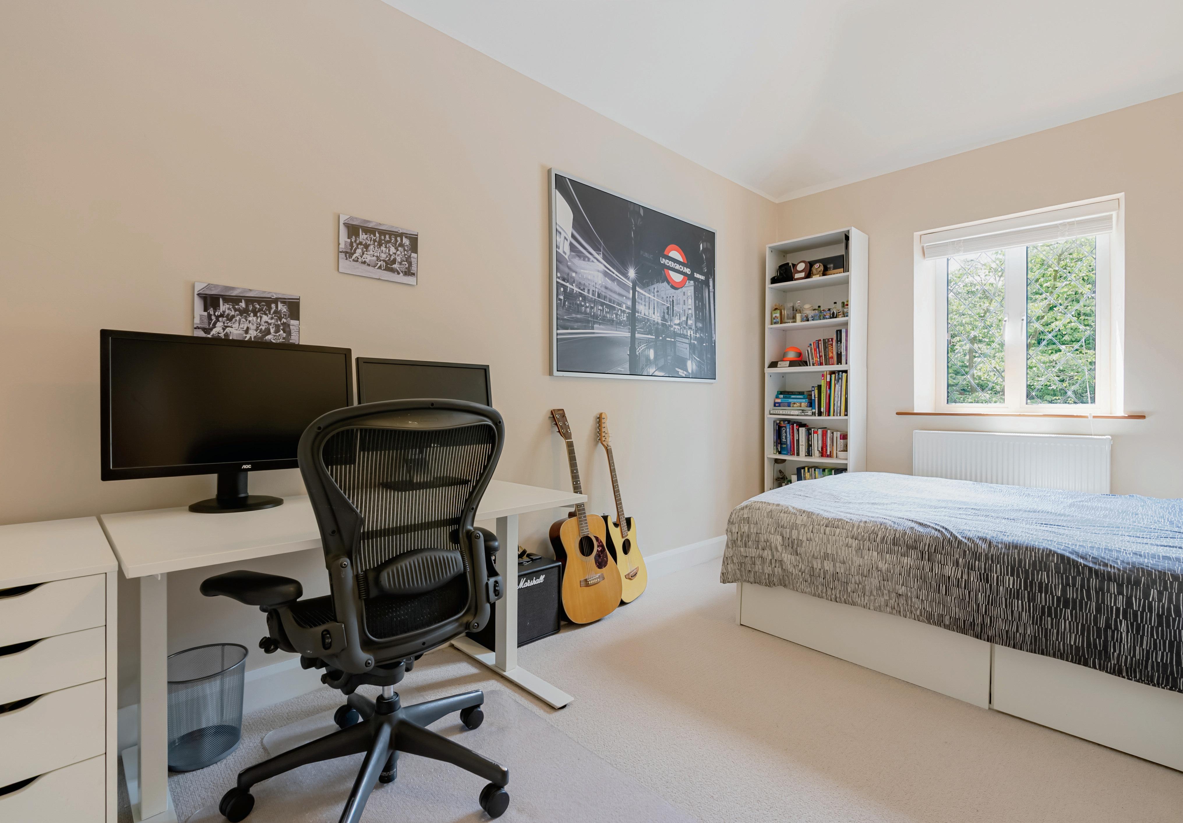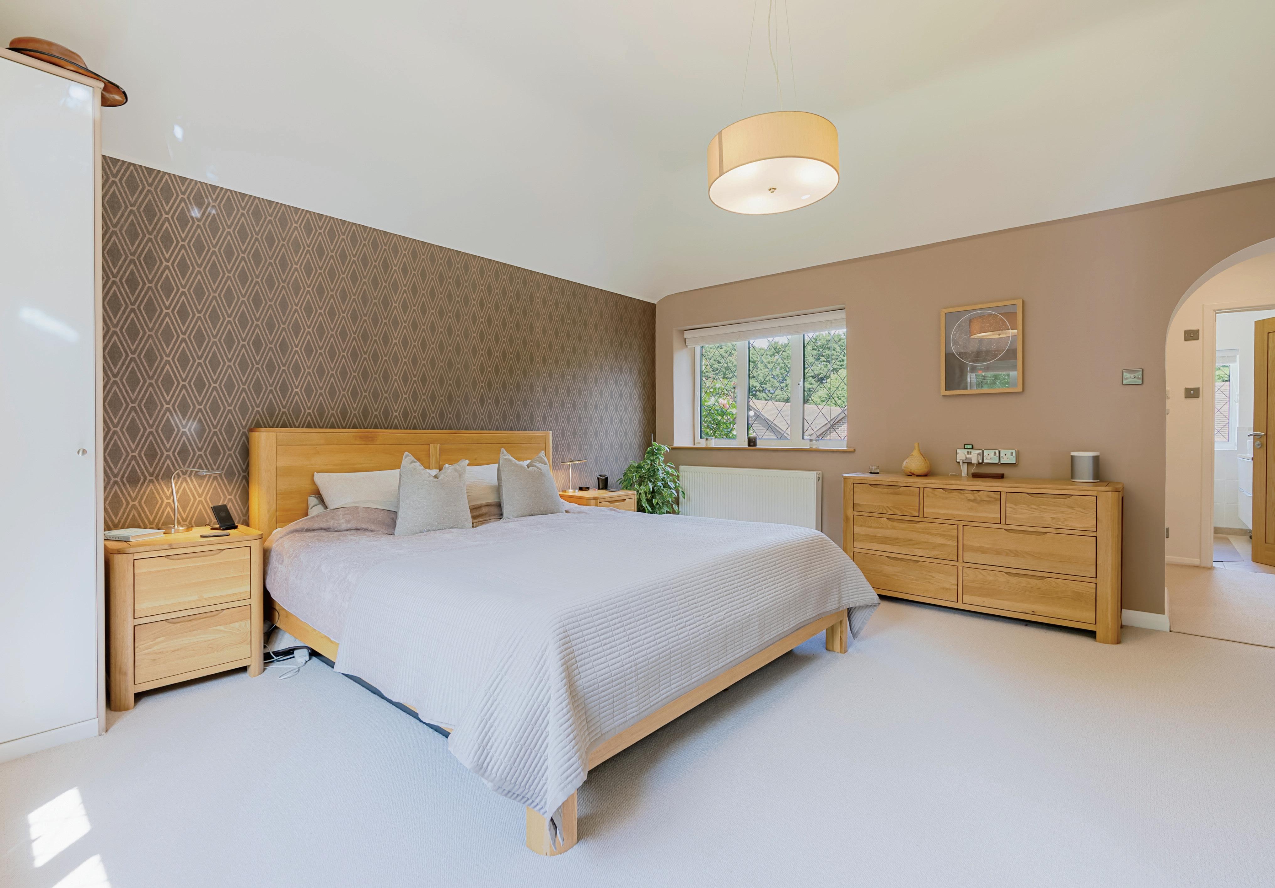 Upstairs, the principal bedroom suite enjoys privacy and space, complete with a dressing room, walk-in wardrobe and ensuite bathroom. There are three further well-sized bedrooms, including a guest suite with ensuite, and a stylish family bathroom – all beautifully presented with quality finishes.
