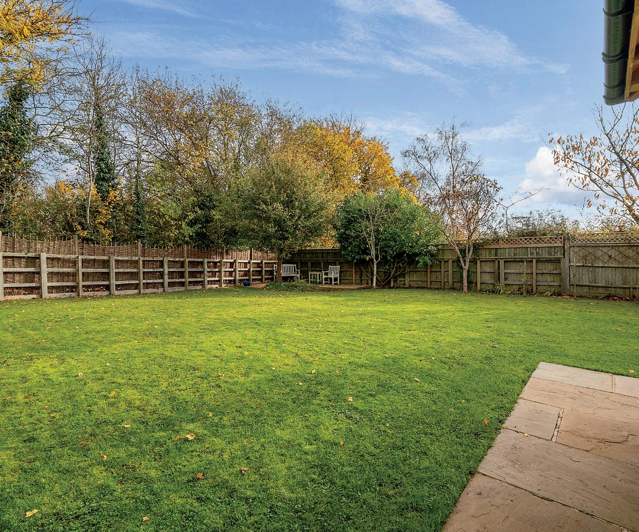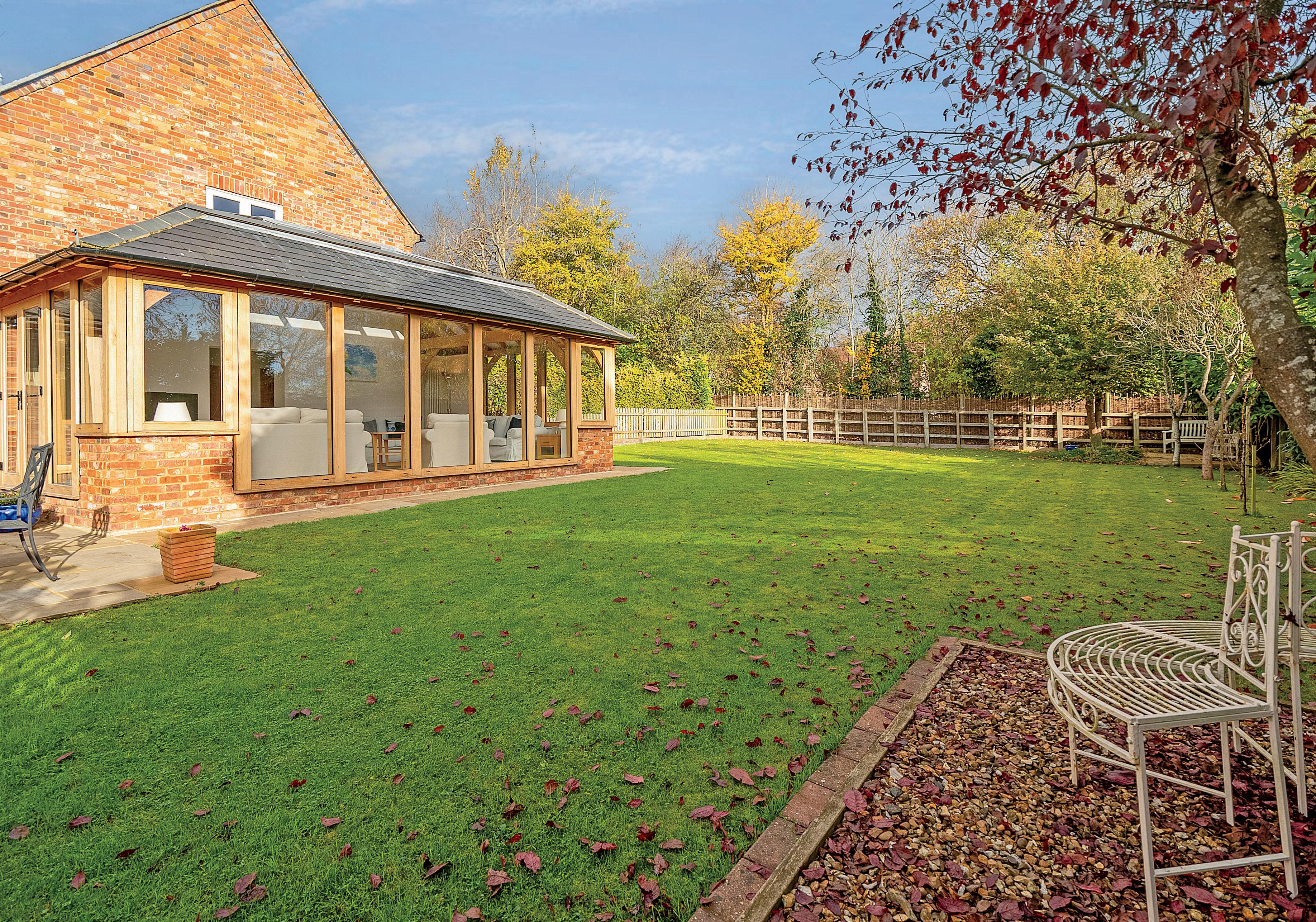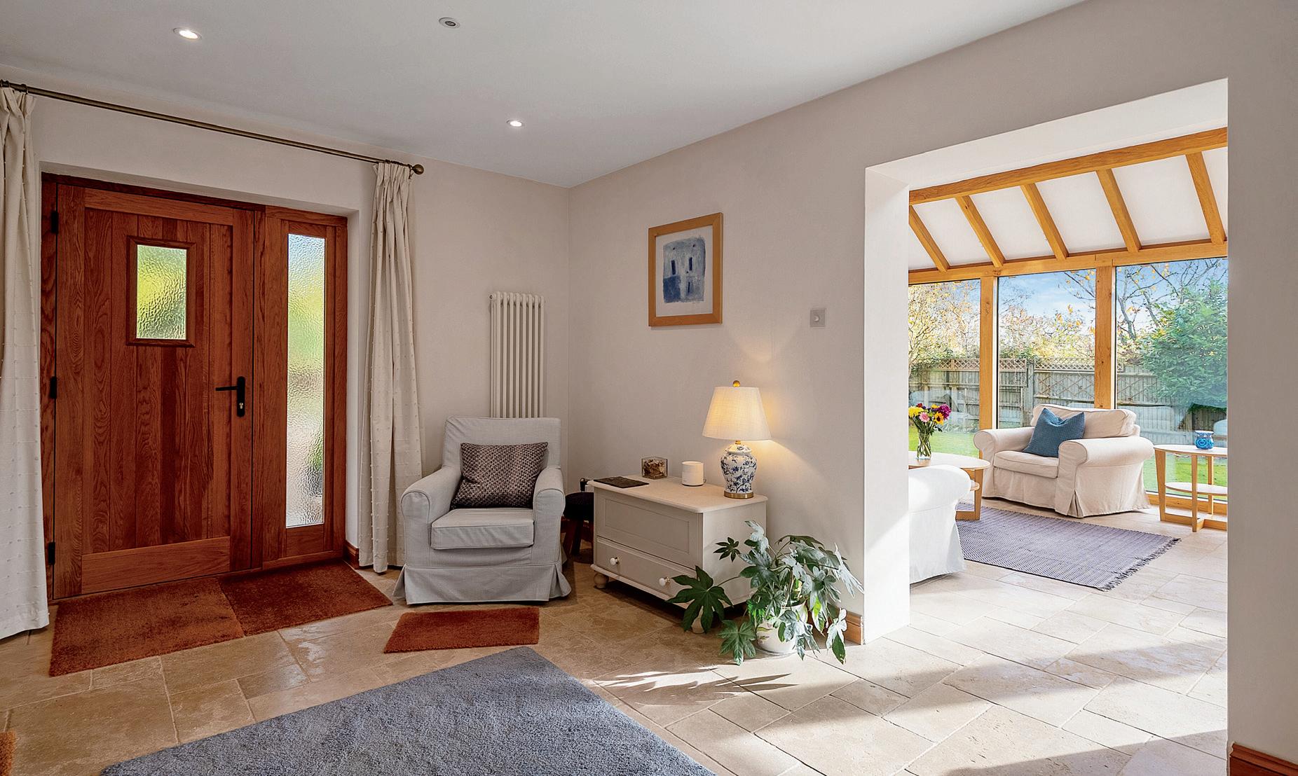 The home is designed for a dynamic lifestyle, with four versatile living spaces that cater to every season and moment. The heart of the home is the spacious kitchen-breakfast room, where family meals are enjoyed. Adjacent is the elegant dining room, perfectly suited for gatherings of all sizes, whether hosting holiday feasts or intimate dinner parties. The lounge offers a warm and inviting space in cooler months, with a cosy inglenook fireplace and log burner that add ambiance to any evening. For the ultimate in relaxation, the recently added oak-framed orangery is a favourite of the current owners, offering a bright, airy connection to the garden and an enchanting view of blue skies through the roof lantern above.