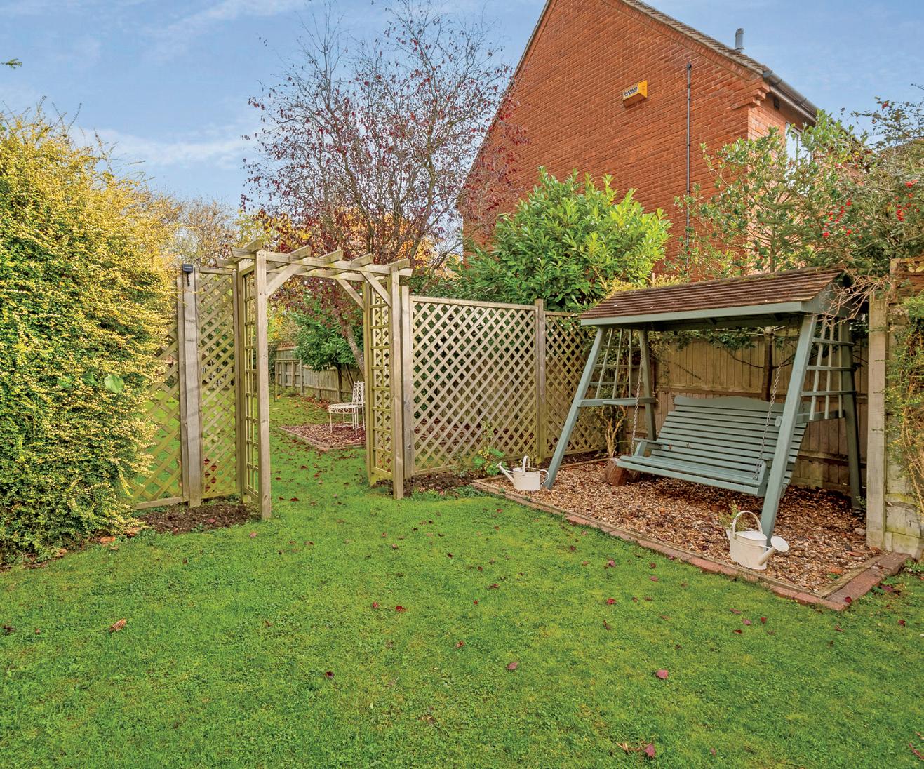All set back behind double gates, there is a large timber storage shed, a good sized lawn with mature trees and immaculate borders, an additional side garden and a superb further garden area to the rear.