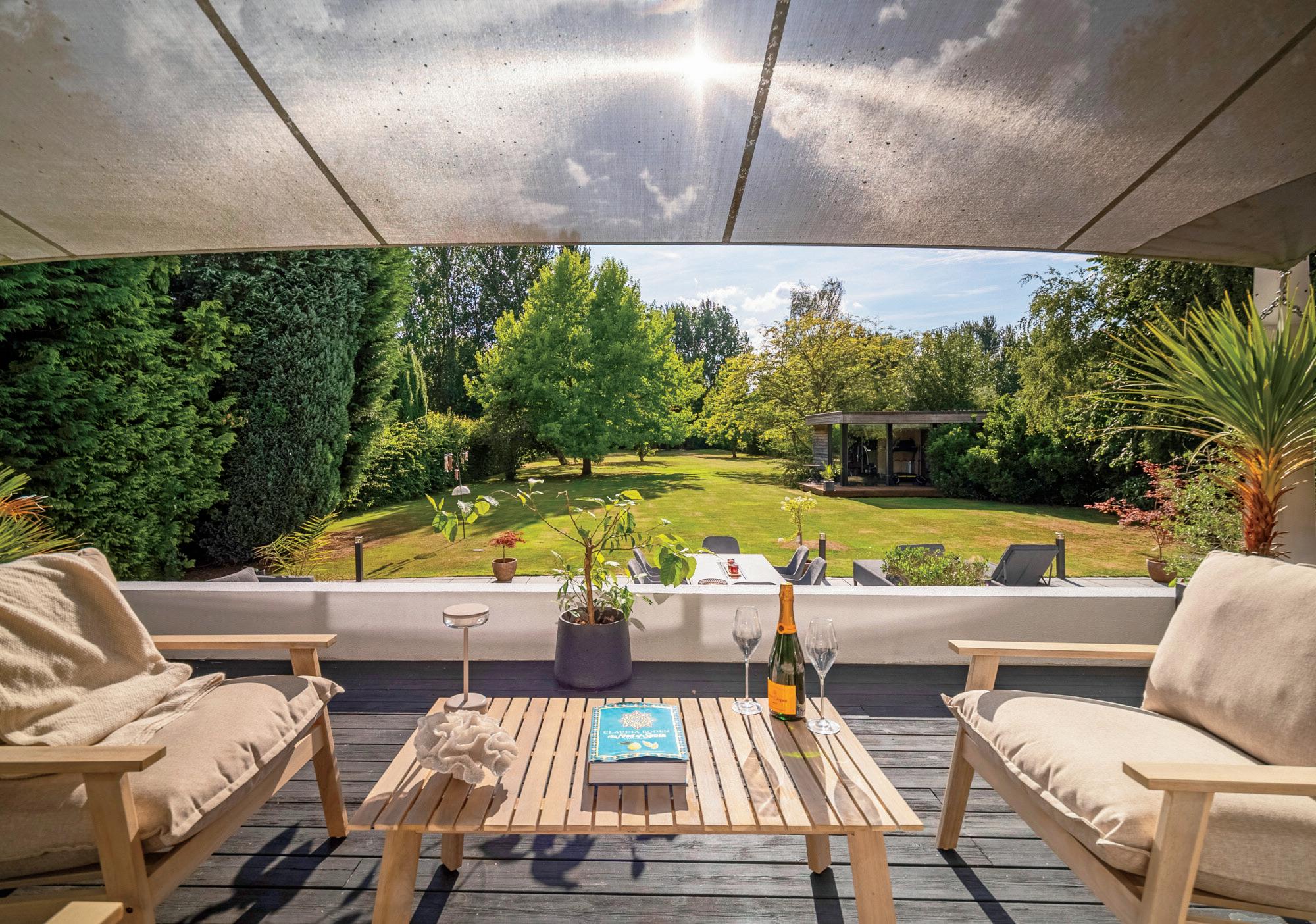 Set over two levels with raised flower beds, a sphere water fountain and large sail shades on the upper terrace, this stunning entertaining area comes to life in the evening with perfectly positioned lighting. So whether you are relaxing in the recessed hot tub or enjoying a drink on the lower terrace there is a space for everything.
