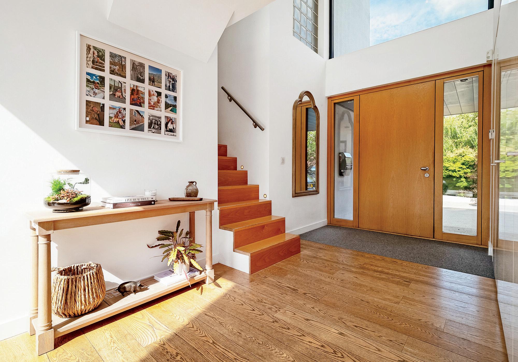 The property is accessed via an oversized Italian armoured timber front door that leads into the bright and spacious reception hall with full height glazing, and views through the entire property out into the rear garden. The hallway also has a range of bespoke fitted storage units to the left offering versatile storage space.