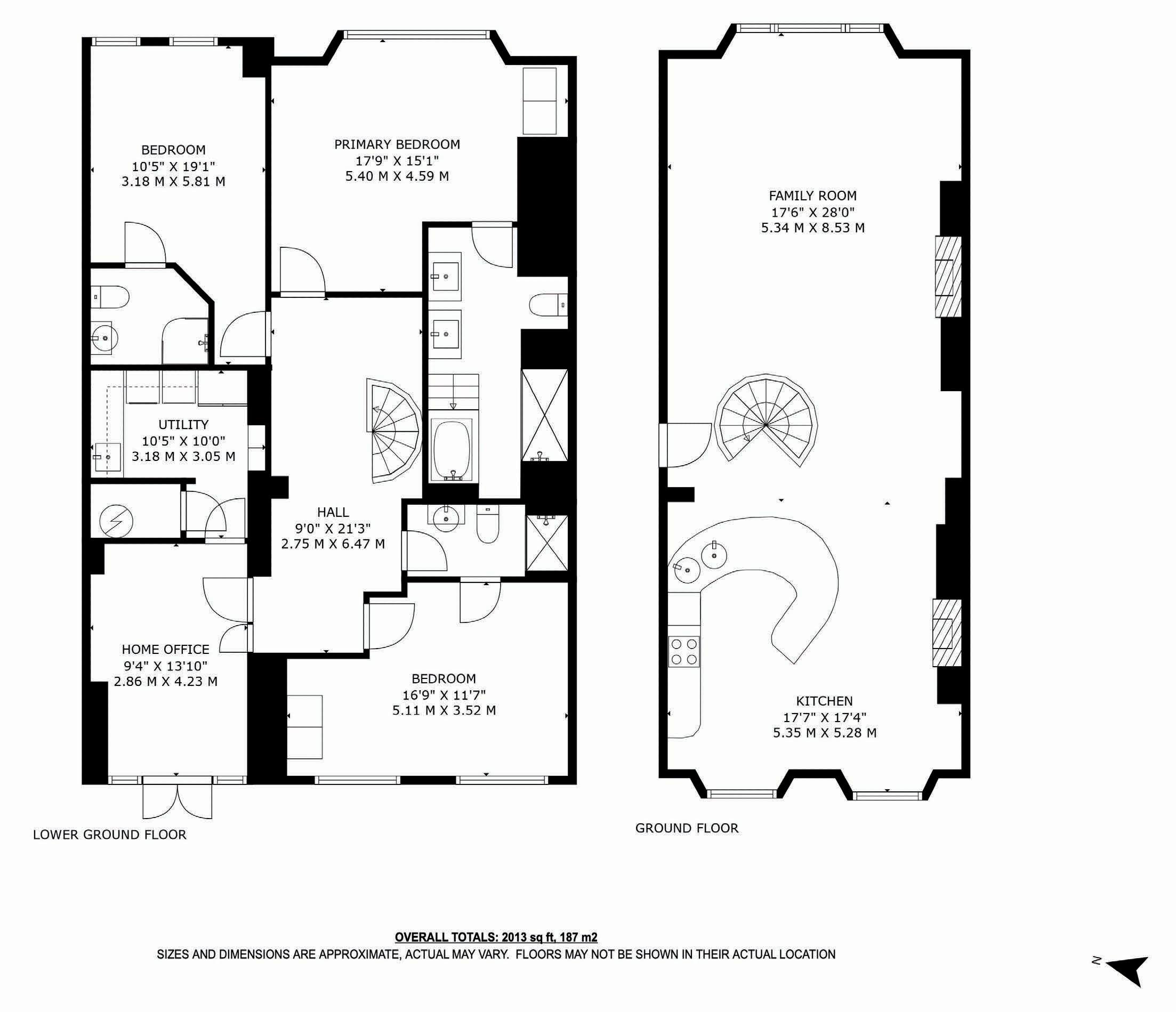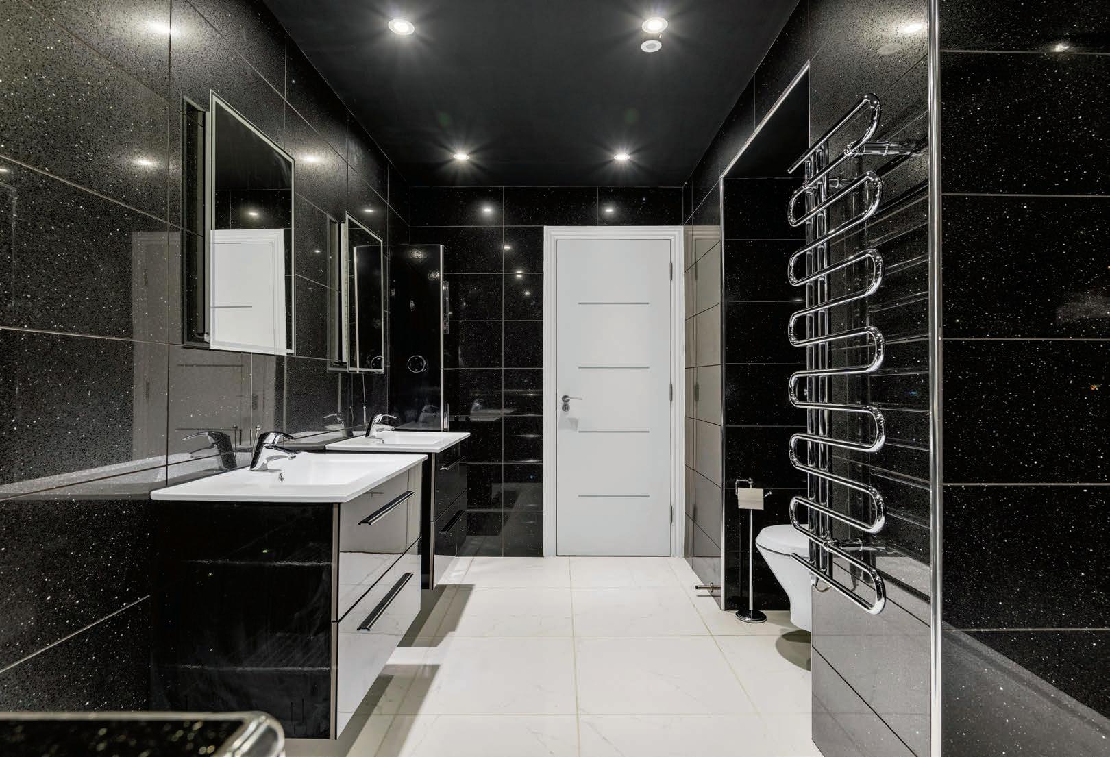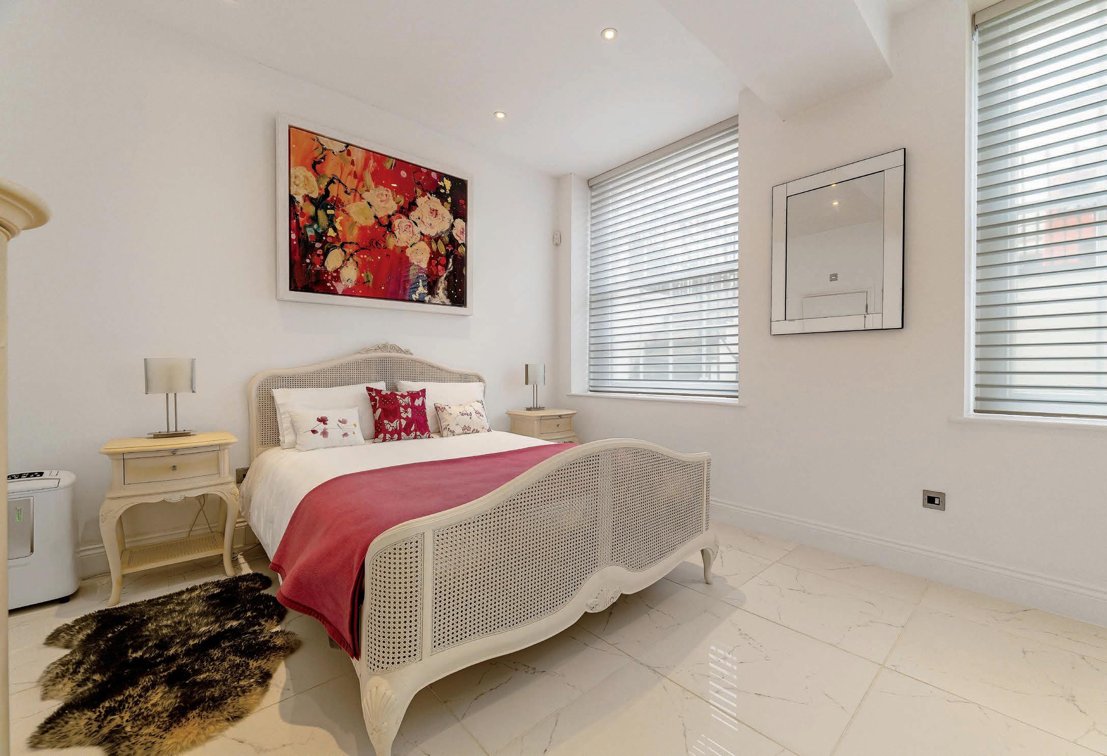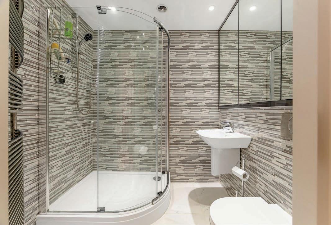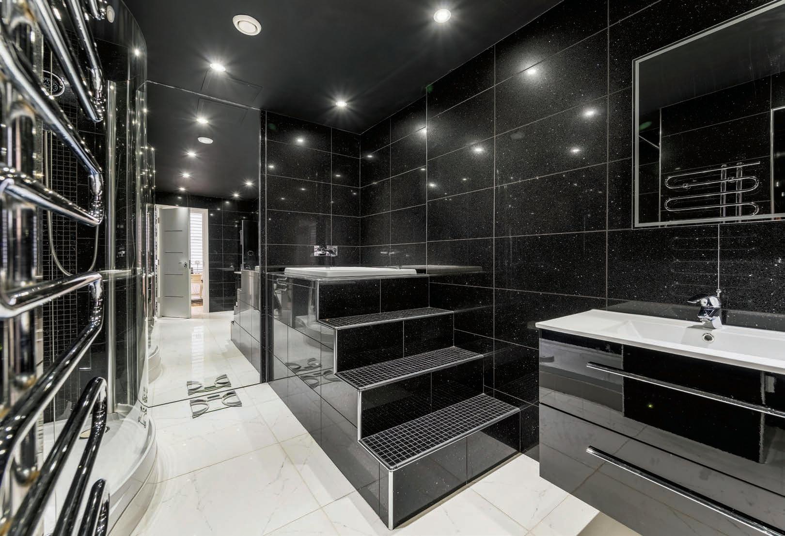 The spiral staircase leads into a spacious hallway on the lower ground floor which in turn leads to three generous double bedrooms, three bathrooms, a utility room and home office. The primary bedroom benefits from a large ensuite with his and hers sinks, walk in shower and Japanese style deep soak bath. The second bedroom has its own ensuite bathroom with walk in shower and the third bedroom has a jack and jill bathroom with shower which can also be accessed from the hallway. The spacious home office has patio doors to the front of the property and access to the convenient utility room.