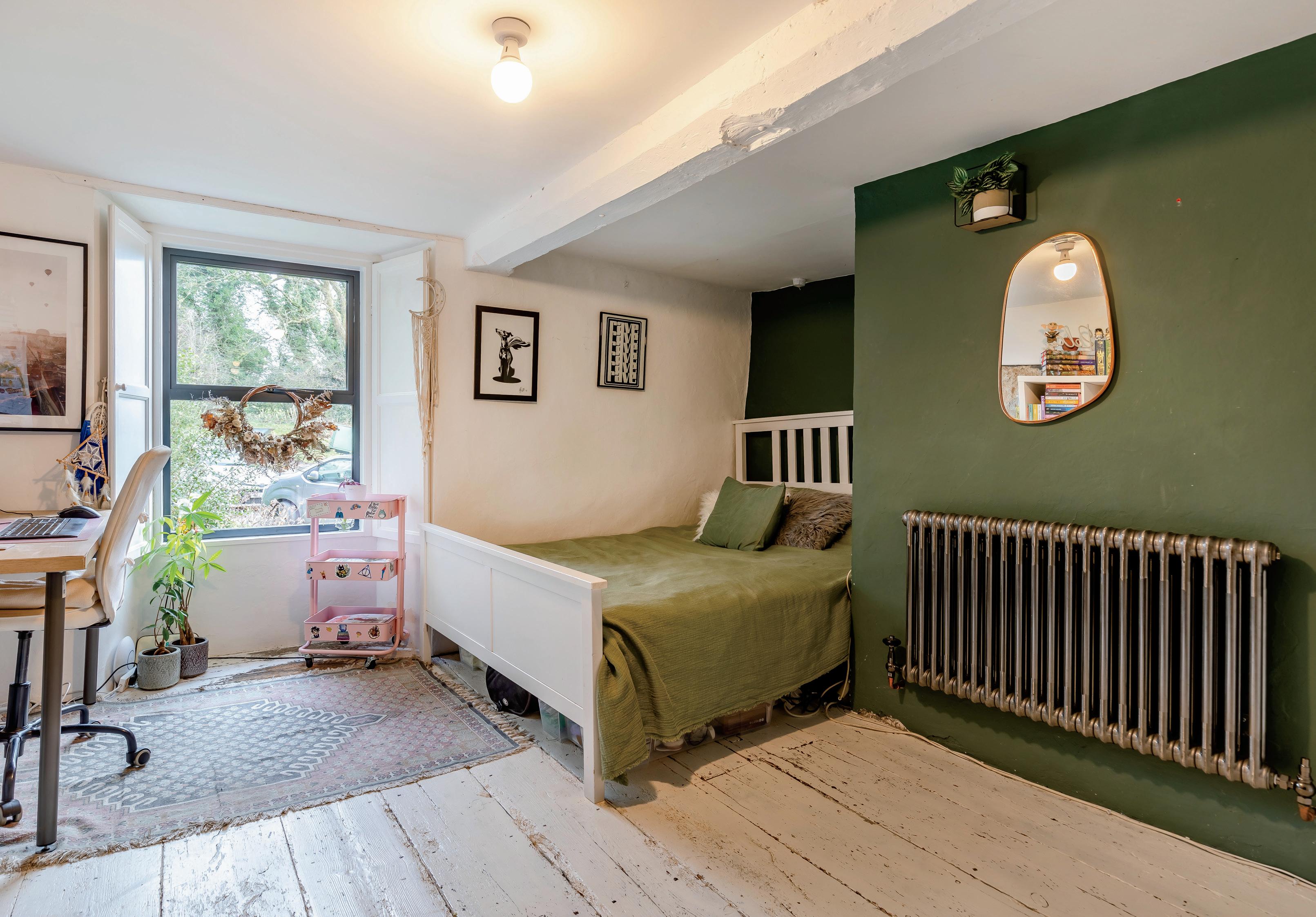 Upstairs, the farmhouse offers three generously sized double bedrooms, each with scenic views of the surrounding countryside. The standout feature is the family bathroom, where a freestanding bath is perfectly positioned to take in the serene views – an ideal retreat for enjoying sunset views in luxurious comfort.