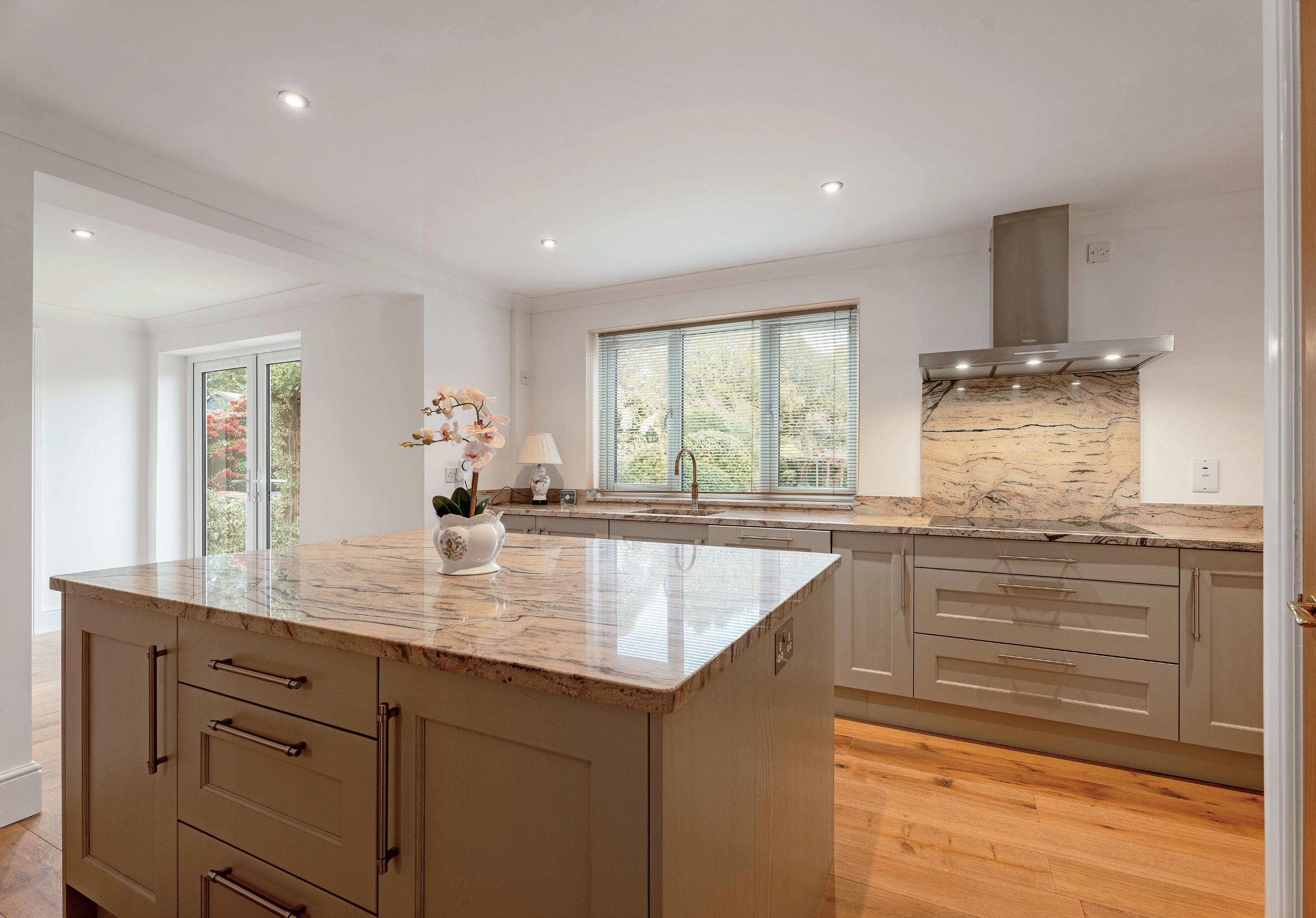 The homes layout perfectly balances functionality and flow, with generous proportions throughout and a seamless connection between rooms that enhances everyday living. The heart of the home is undoubtedly the kitchen — completely transformed by the owners to create a contemporary space ideal for both family life and entertaining. The large central island forms a natural gathering point, encouraging conversation over morning coffee or evening meals, while the adjoining sunroom floods the space with natural light and offers an inviting spot to relax and enjoy the garden views year-round.