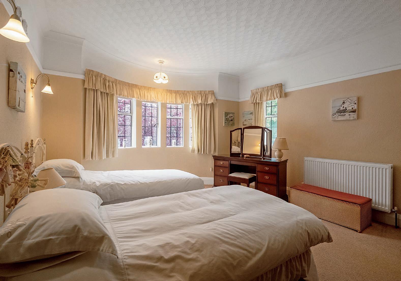 The guest bedroom has windows to the front and side and also has a fitted vanity unit.