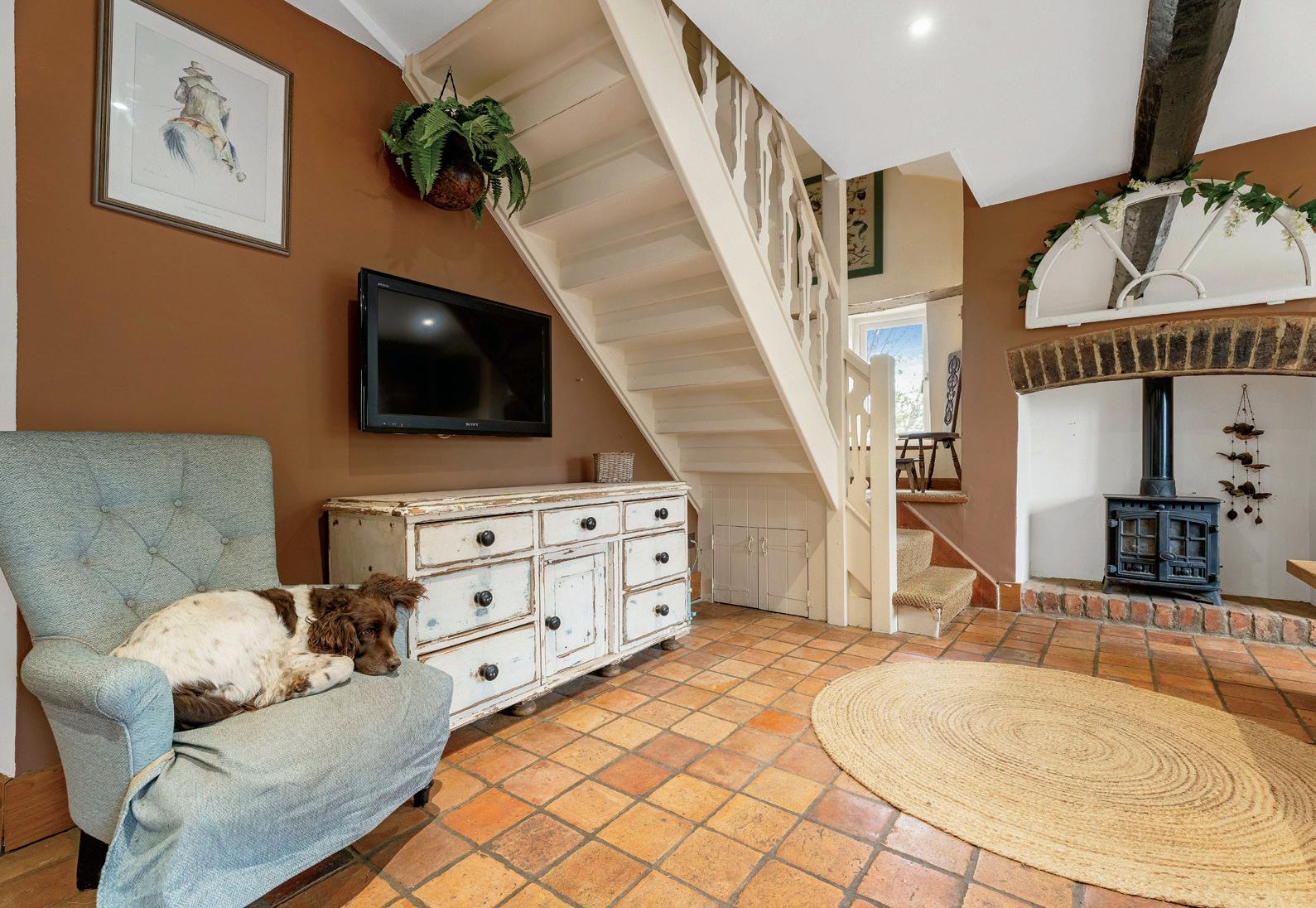 The breakfast kitchen/family room has tiled floor, ample work space, an Aga, integrated oven and fridge, direct access to the family area which has a wood burning stove, windows to three elevations and a door to the rear elevation.