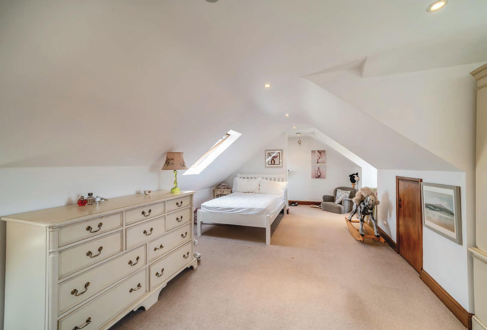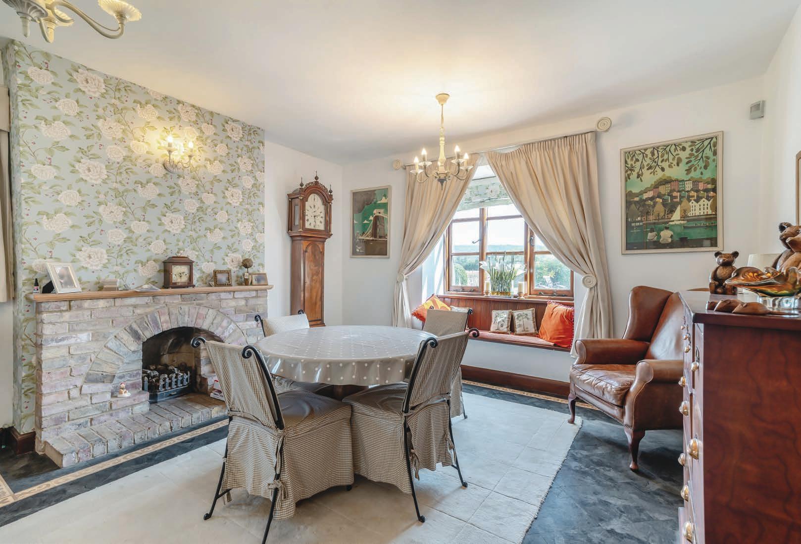 The kitchen/dining room serves as the beating heart of the house: a spacious, light-filled room that perfectly balances family functionality and farmhouse charm. Fitted with a comprehensive range of painted wall and base units, a central island, and high-quality integrated appliances, the space is anchored by an electric Aga and a feature fireplace. A built-in window seat provides a perfect spot to enjoy views over the gardens.