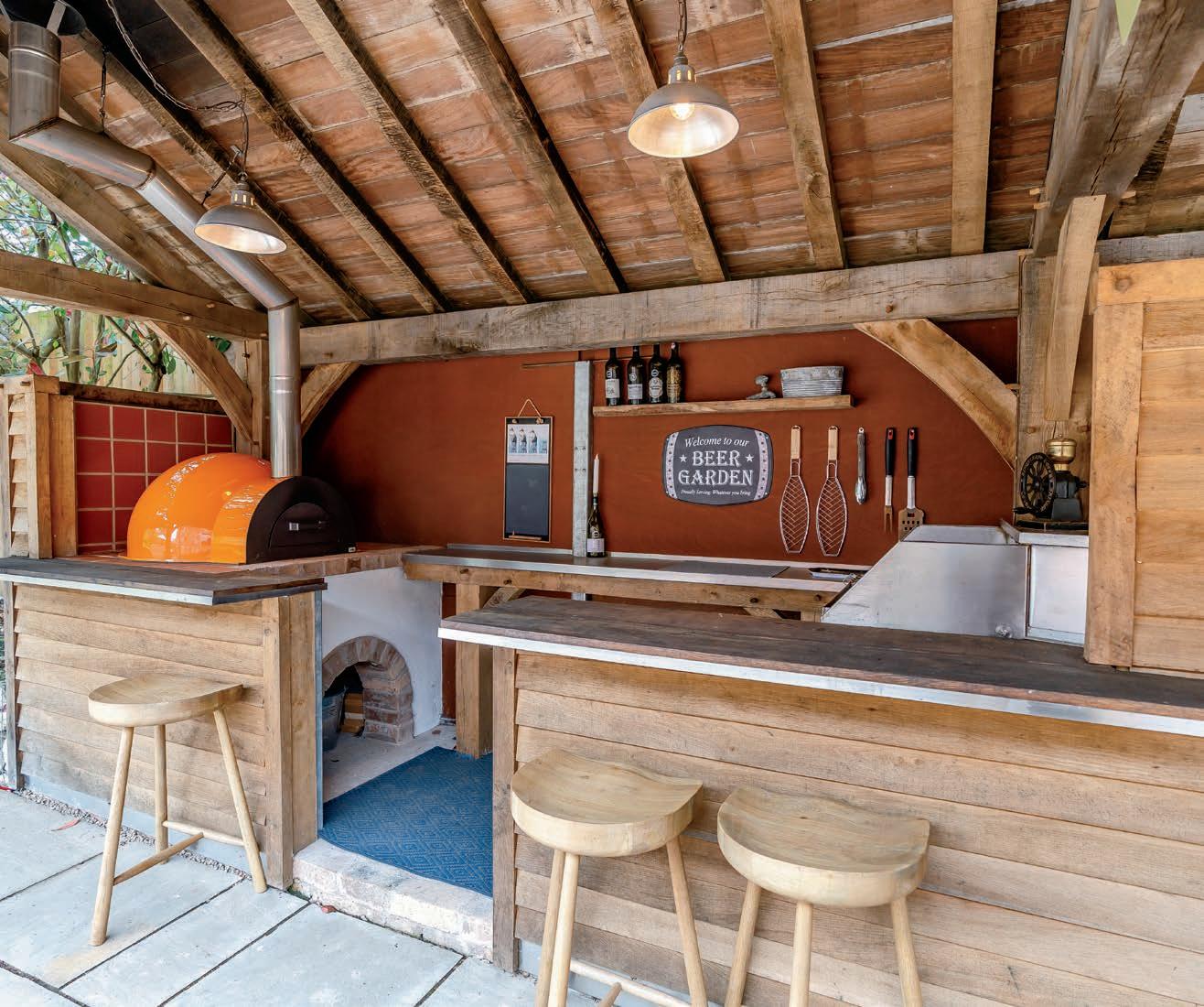 Our favourite part of living here has been the balance of cosiness and grandeur. The beamed lounge, complete with a glowing log burner, is our go-to haven for winter movie nights. In contrast, summer brings life to the garden, where alfresco dining in the covered entertainment area – complete with a BBQ and pizza oven – creates unforgettable moments with family and friends.