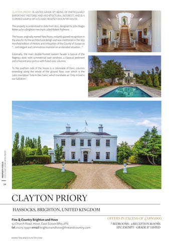 CLAYTON PRIORY HASSOCKS, BRIGHTON, UNITED KINGDOM Fine & Country Brighton and Hove 52 Church Road, Hove, East Sussex BN3 2FN tel 01273 739911 email brightonandhove@fineandcountry.com WWW.FINEANDCOUNTRY.COM