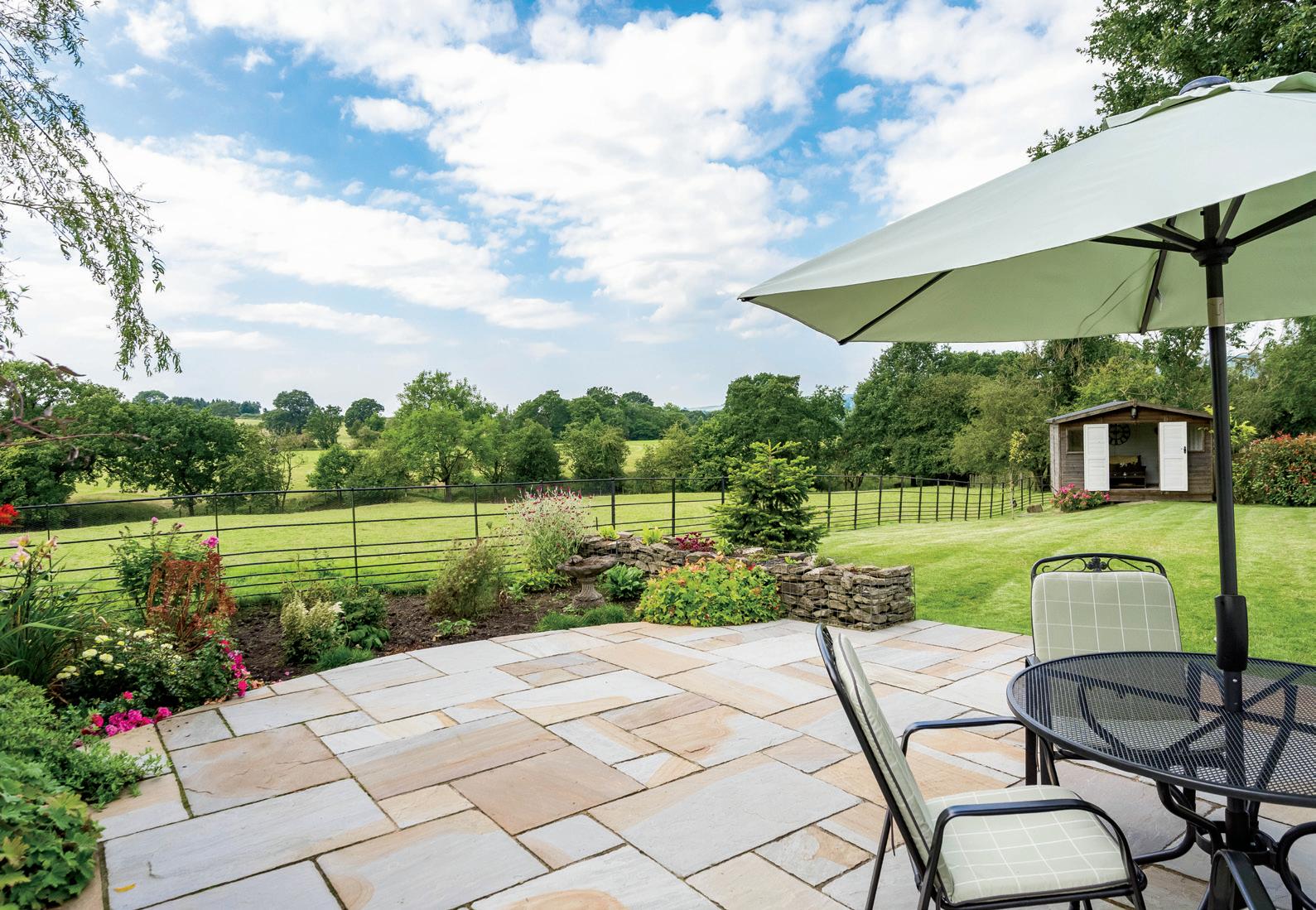 The exterior features a stone-flagged seating area to the front. Beyond the lane, a large driveway provides ample off-road parking and leads to a carport with a workshop, both with power and light, which could serve as a double garage. The garden is a sun worshipper’s dream, delightfully abutting open countryside and farmland, boasting an Indian stone-flagged patio with borders stocked with mature plants and shrubs, a good-sized lawn, and a summer house, perfect for relaxation and enjoying the incredible evening sunsets. To the rear is an Indian stone flagged patio.
