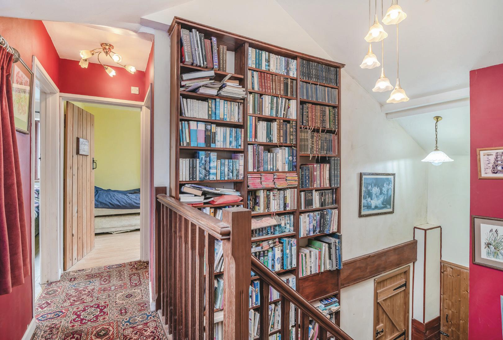 In the centre of the property is a generous entrance hall and staircase with floor-to-ceiling bookshelves that create a fantastic library area.