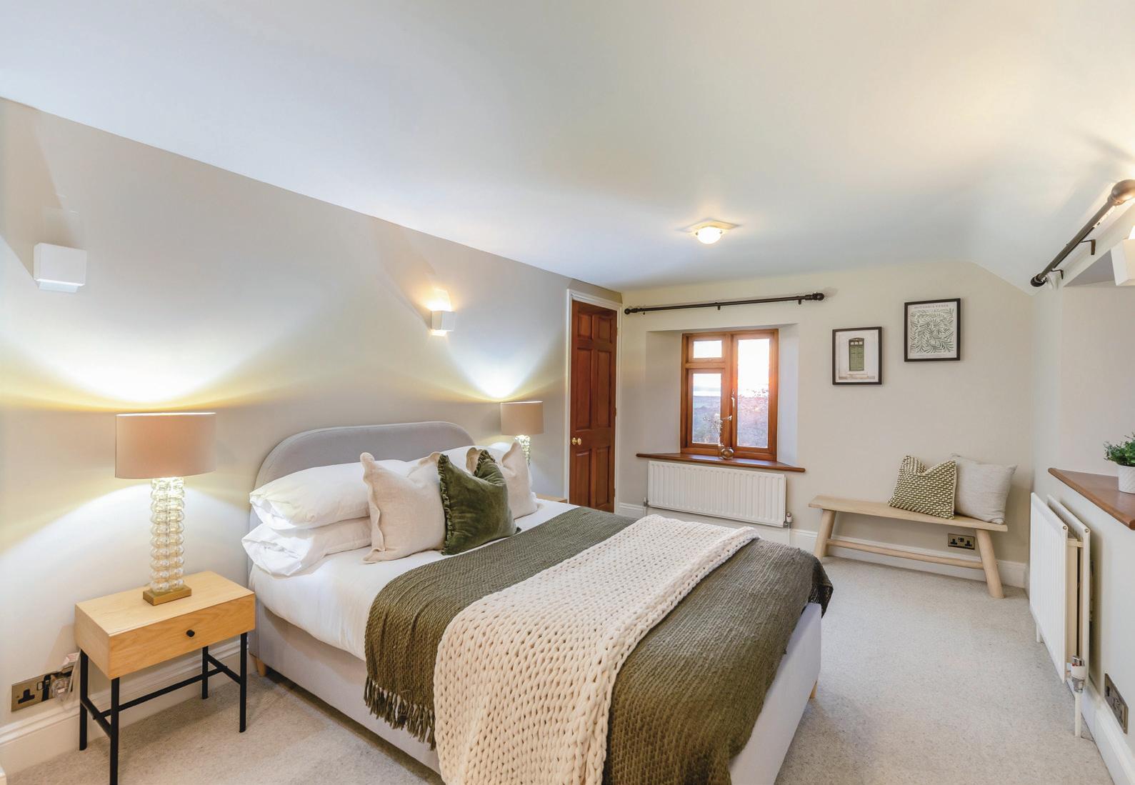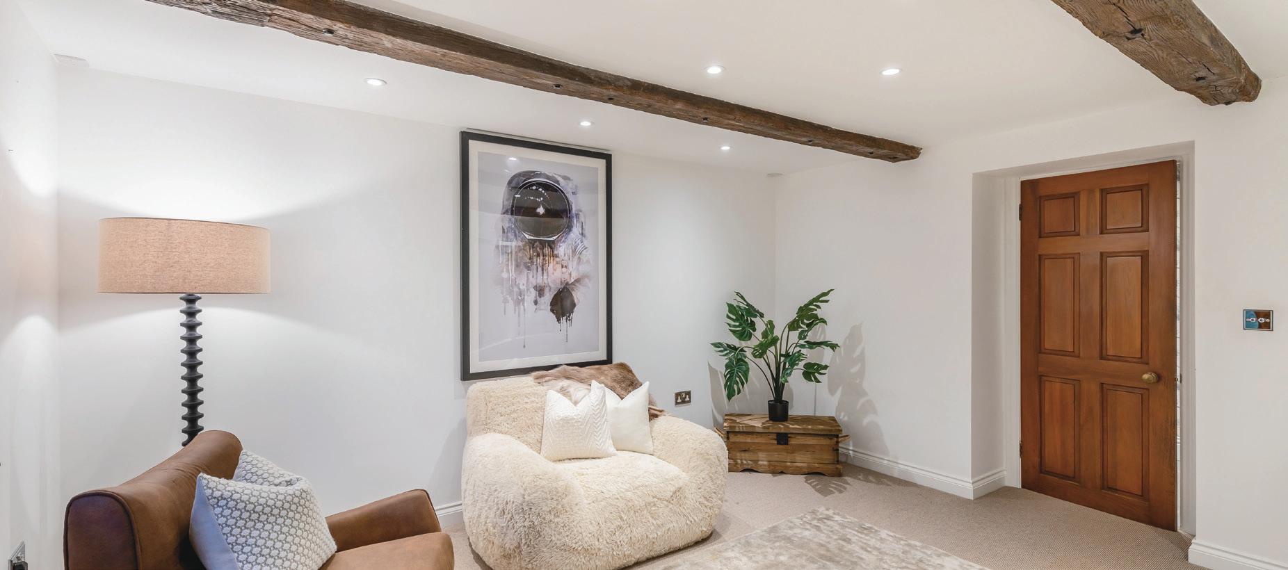 The principal residence exudes timeless sophistication. Every detail has been curated to blend classic country charm with modern refinement. At its heart, a beautifully appointed kitchen and dining room opens through elegant bi-fold doors to a sun-drenched terrace—an inviting setting for alfresco dining and evenings spent beneath the stars. The sitting room, anchored by a grand stone fireplace and wood-burning stove, radiates warmth and intimacy. A few steps lead down to a luminous glass area, a tranquil sanctuary bathed in natural light, perfect for unwinding, reading, or simply savouring the ever-changing vistas of the surrounding countryside. Completing the thoughtfully designed ground floor are a study, games room, utility and boot room, and cloakroom.
