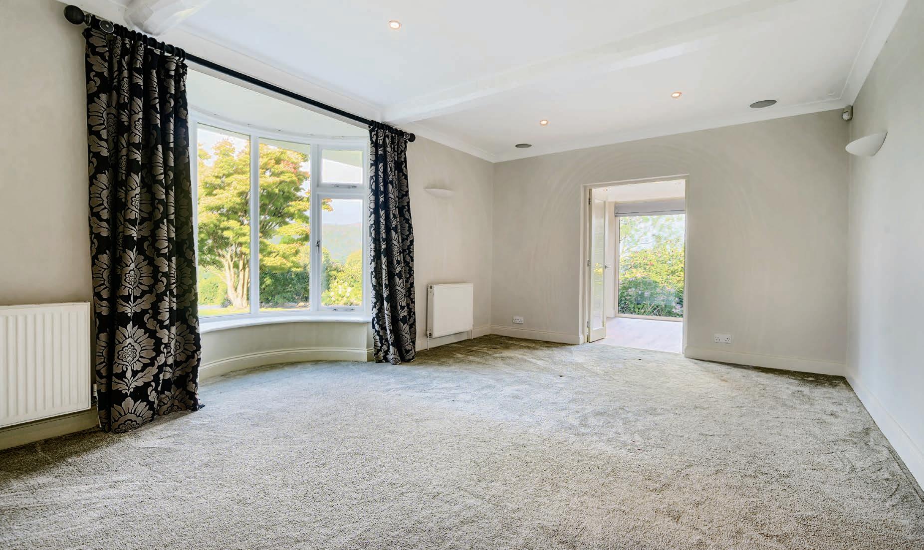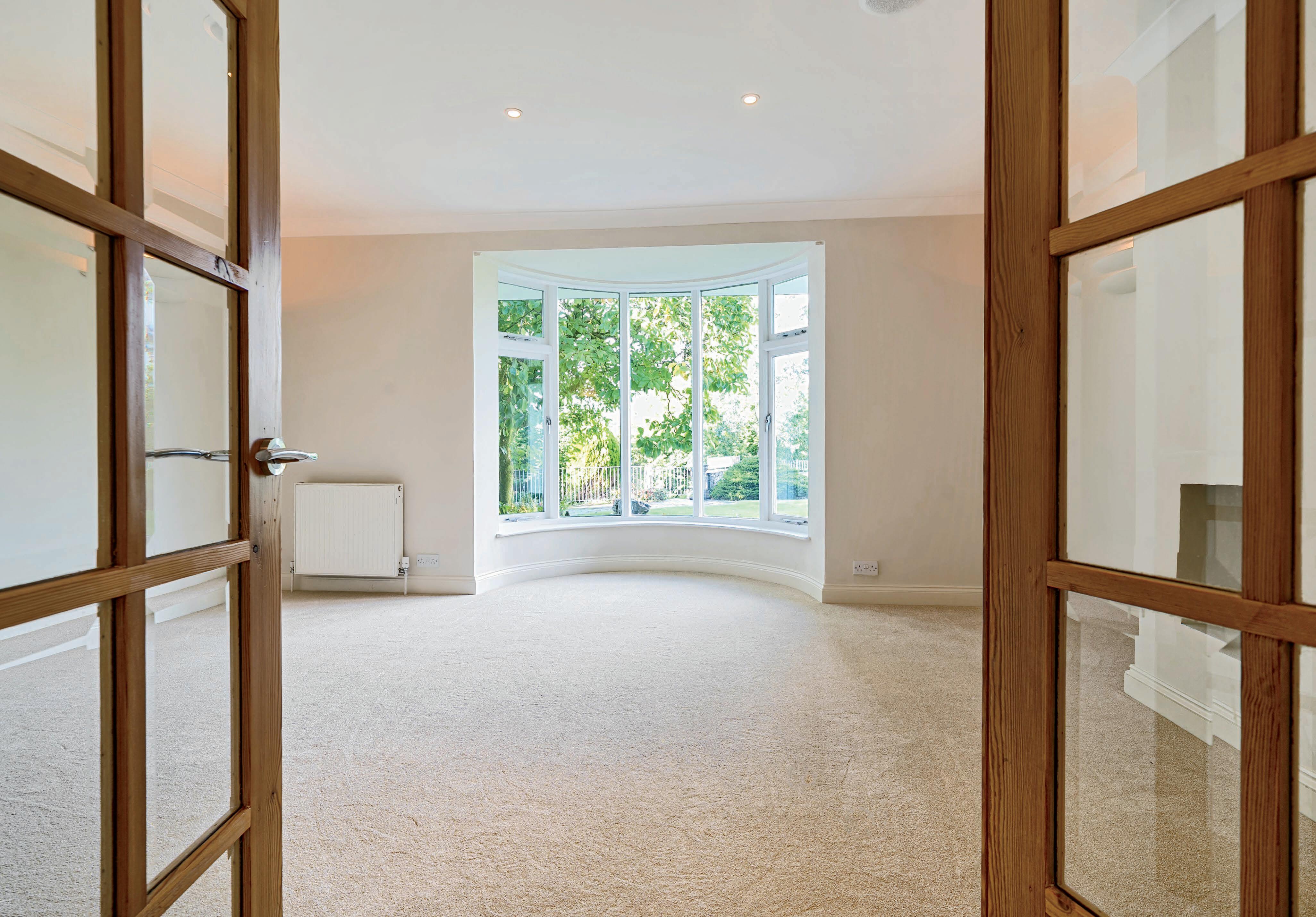 Continuing the flow of living space, double doors from the living kitchen open to the first of two sitting rooms. Convenient but still atmospheric, there’s a living flame gas fire and a characterful semi circular bay window – the view to the garden and then over towards Claife Heights is particularly attractive. There are two further reception rooms, the middle one is currently used as a gym, but over the years it’s been a formal dining room and also a playroom. It too has a great view from the bay window and to maximize light there is a set of double partly glazed doors from the hallway. The third reception room is at the far end, it looks out to the garden and in particular the magnificent magnolia tree. This lovely room has a dual aspect with a square bay window which includes French windows out to the garden.
