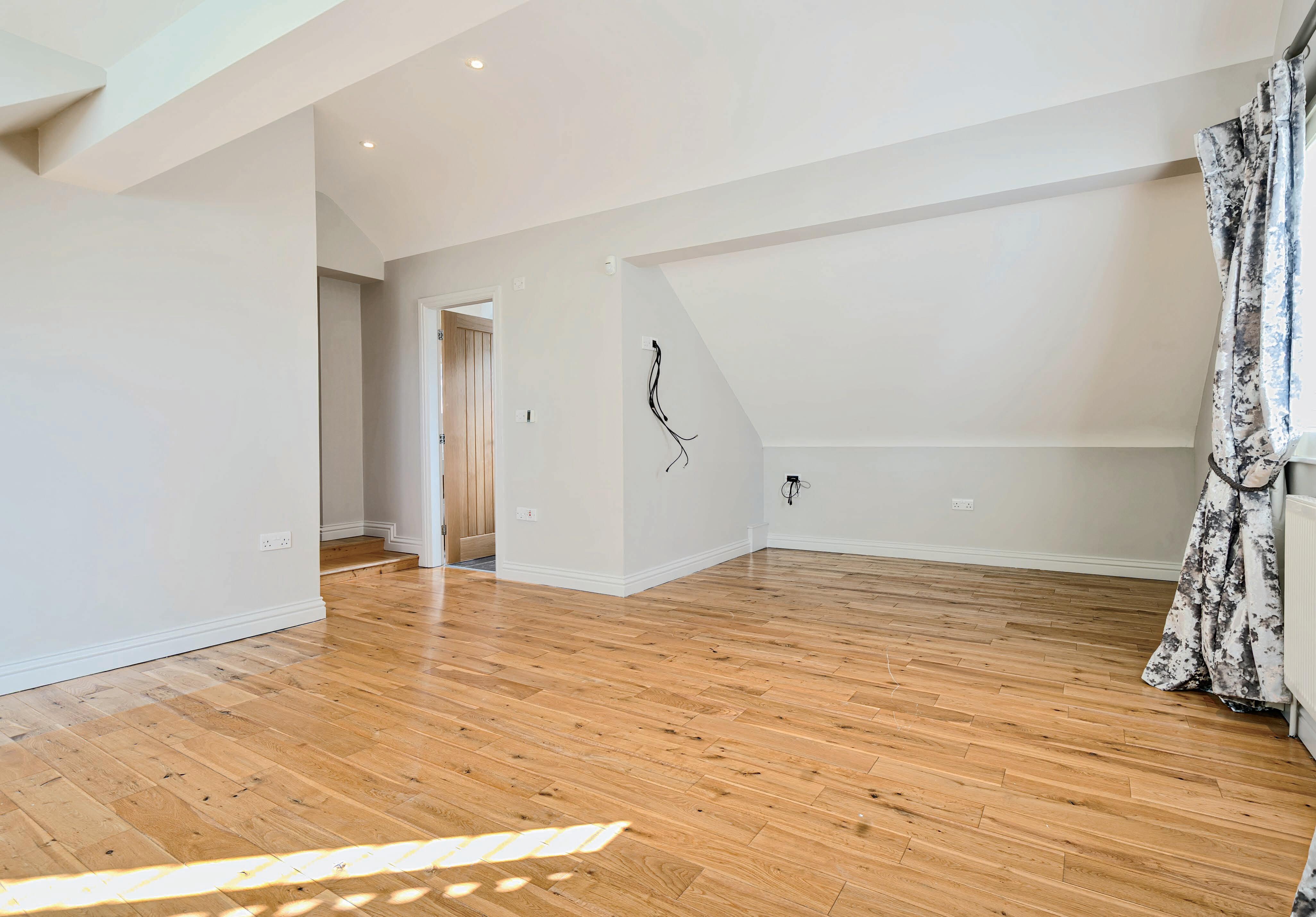 A super light stairwell leads to the first floor landing with a walk in wardrobe. The principle bedroom is an absolute treat and rightly so. It’s spacious and has a contemporary ensuite bathroom with a separate large shower. The bedroom has a dormer window with views over to Claife Heights, but thanks to sliding doors creating a dual aspect there is also a view north which includes Lake Windermere itself, and, wait for it, there is access to a large private balcony. You can lie in bed and see the lake. How wonderful would that be? The vast balcony is absolutely fabulous. Incredibly private it offers a unique vantage point. We can just imagine a morning cup of tea here in warmer weather and as for a sundowner or two as you watch the sun set over the fells, well, trust us, you’ll want to make it invitation only, to be shared with only your favourite people!