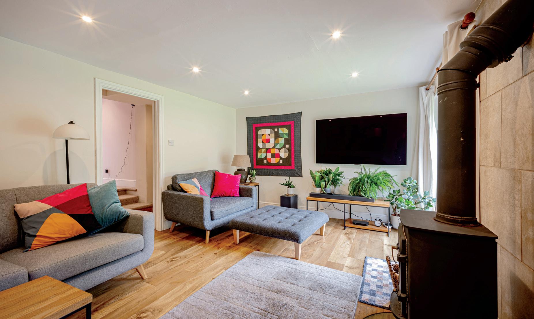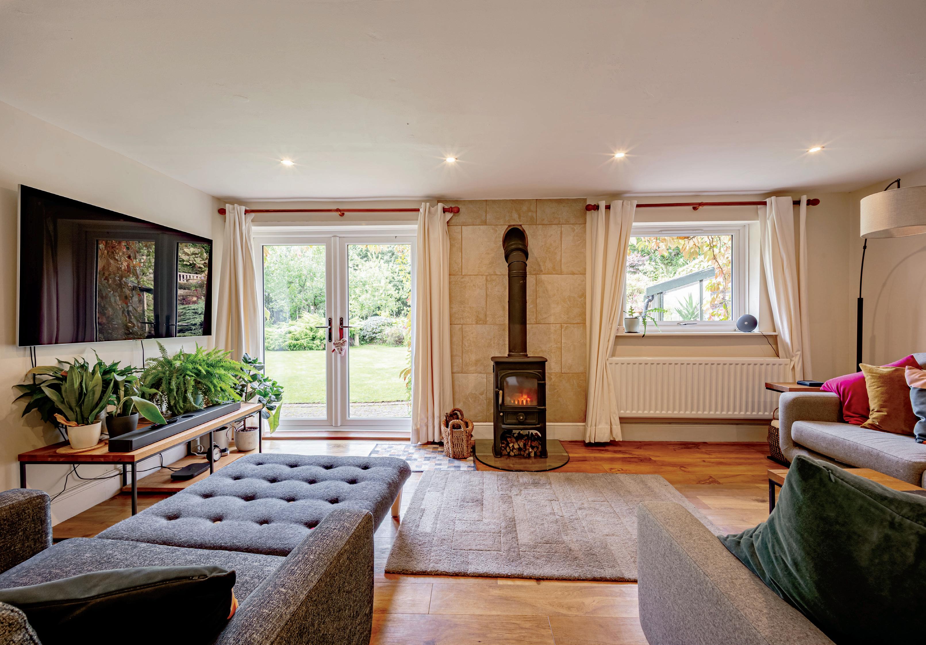 Along the hall there is a useful understairs cupboard. From here is a reception room, used as a study with views onto the garden. The utility room has full height built in storage, plumbing for white goods and space for a fridge freezer and a traditional Butler sink. The Worcester boiler is situated here; it is 6 years old and last serviced 09.01.25. There is also a separate cloakroom with wc and sink. The second reception room is a delightful snug, cosy in the winter with the benefit of a Clearview stove. Like the kitchen it has patio doors that lead straight out onto the terrace, making this a lovely room to enjoy in the summer months too.