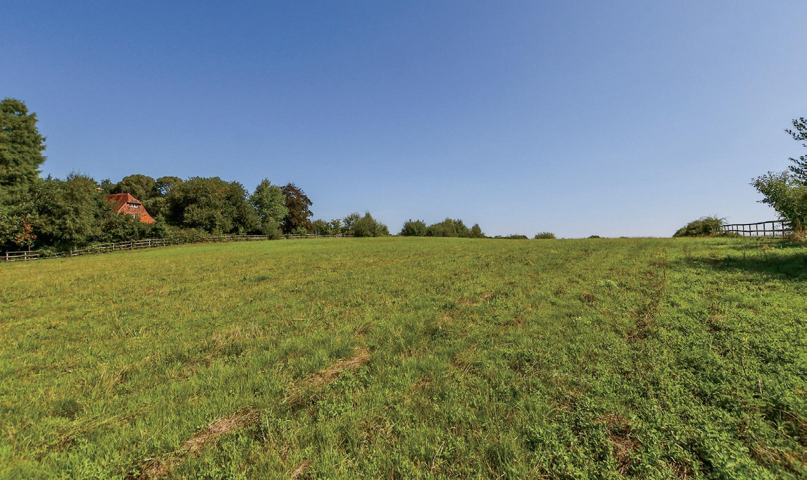 Outside, as well as the swathes of lawn interspersed with trees and shrubs, there is also a raised decked area for al fresco entertaining and access to the orchard and the stable block that includes three stables, a tack room and hard standing as well as a gateway to the three acre field. There is also an impressive separate solid wood double gate entrance from the lane to the orchard and stables, which is large enough to accommodate a horsebox.
