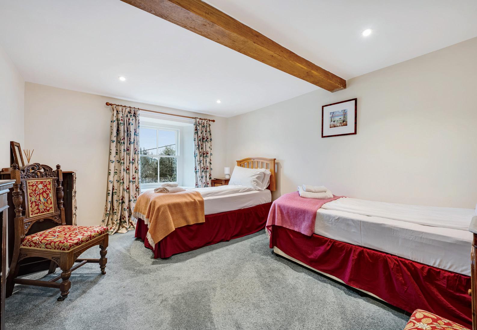 As you make your way upstairs you will find the well-appointed family bathroom, complete with a grand roll top bath. Leading onto a twin bedroom, a large double bedroom and the master king-size room, each offering delightful views to the gardens and fields beyond. Additionally, there is a spacious attic space providing ample storage and housing the hot water cylinder, Triple Power Charger for solar system and electric meters.