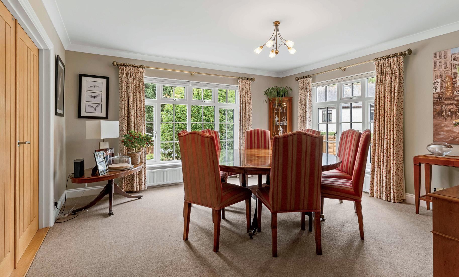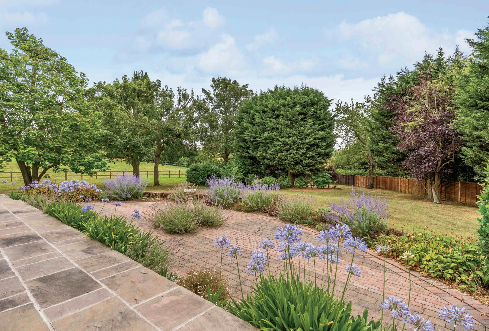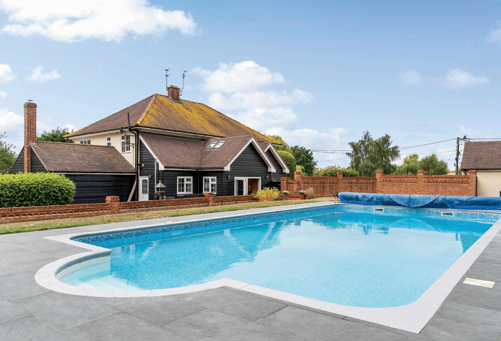 Lichfield House is approached via a sweeping private driveway, leading to a detached double garage and ample parking. The manicured gardens surrounding the house provide generous outdoor space for families and are thoughtfully designed to complement the elegance of the home. A particular highlight is the heated swimming pool, discreetly screened by low hedging to offer both privacy and a sun-drenched retreat during the summer months. This area is perfect for outdoor entertaining and relaxation, with ample space for seating, lounging and dining.
