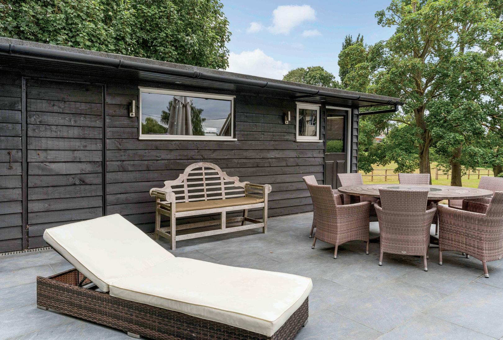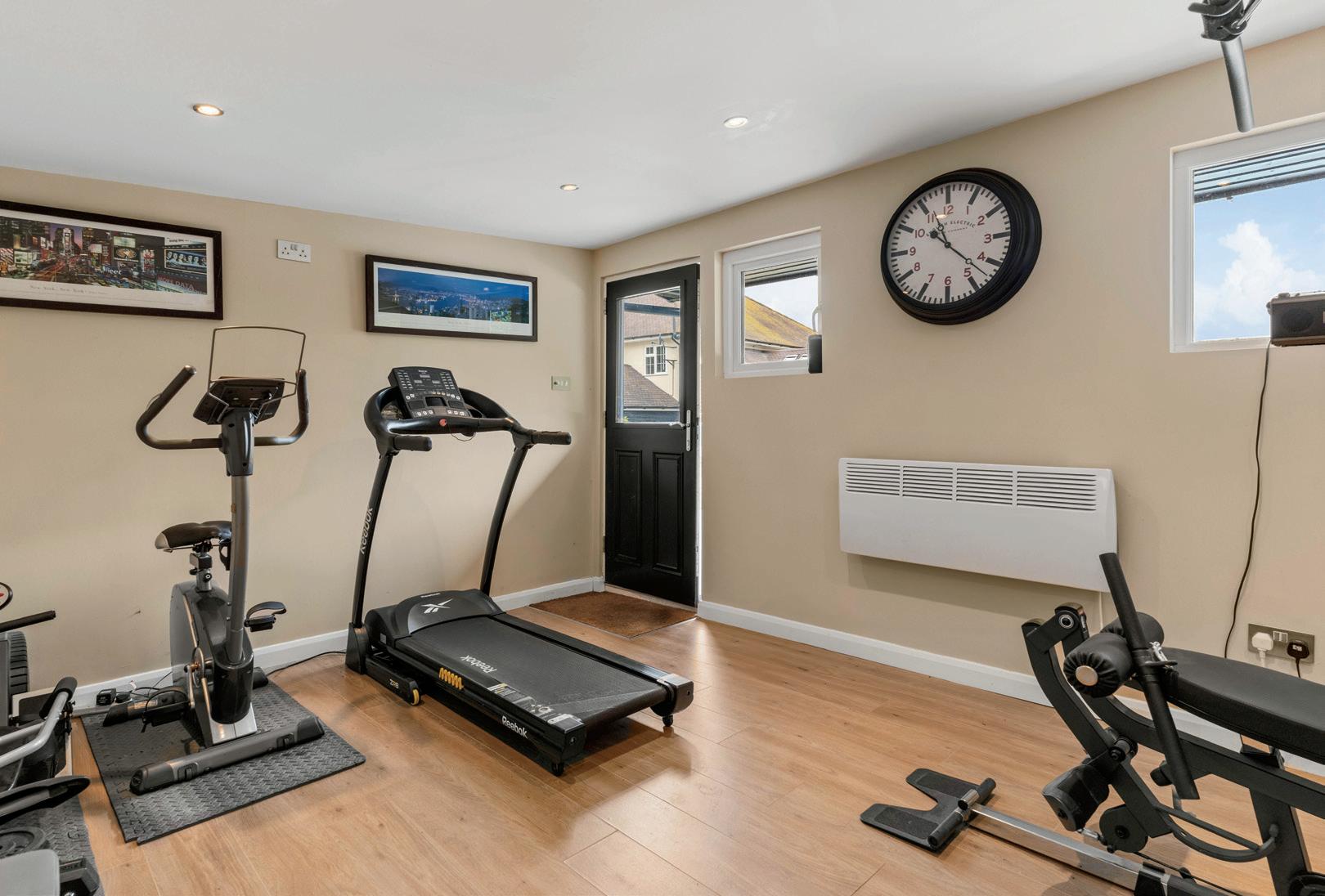 Adjacent to the pool is a weatherboarded pool room/gym, along with an additional changing room complete with shower, WC, and a small kitchen area—ideal for summer gatherings or guest use. Tucked behind is a versatile workshop, fitted with double doors to accommodate garden equipment or machinery storage. Totalling1.7 acres, there is a dedicated paddock area, with post and rail fencing, ideal for equestrian use.