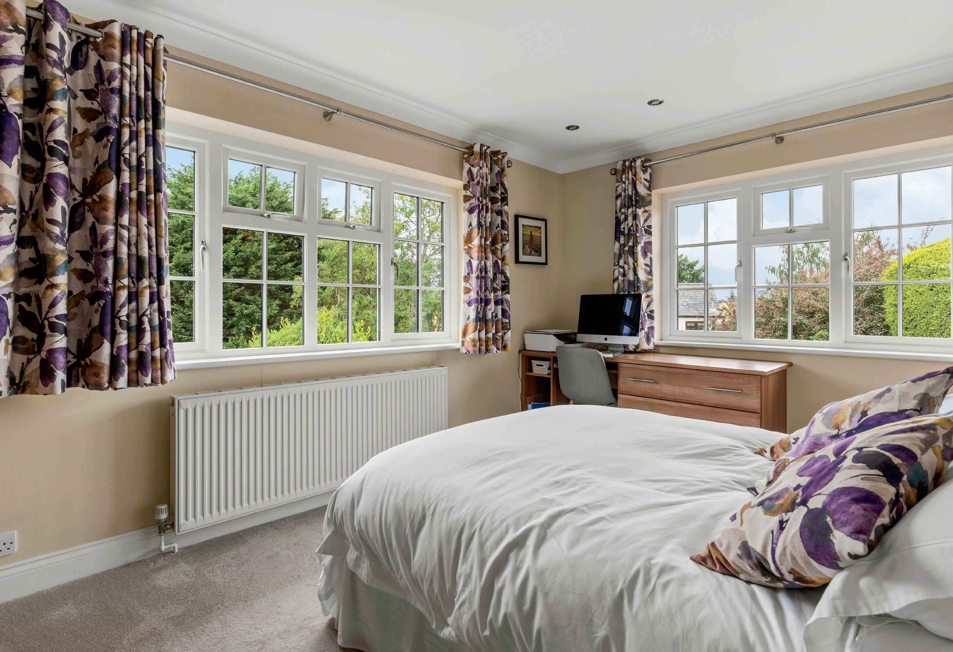 Upstairs, the impressive principal bedroom suite boasts its own private bathroom and shower, offering a luxurious retreat. Bedroom two features an en-suite shower room, while three additional double bedrooms share a well-appointed family bathroom. All the bedrooms benefit from views across surrounding countryside.
