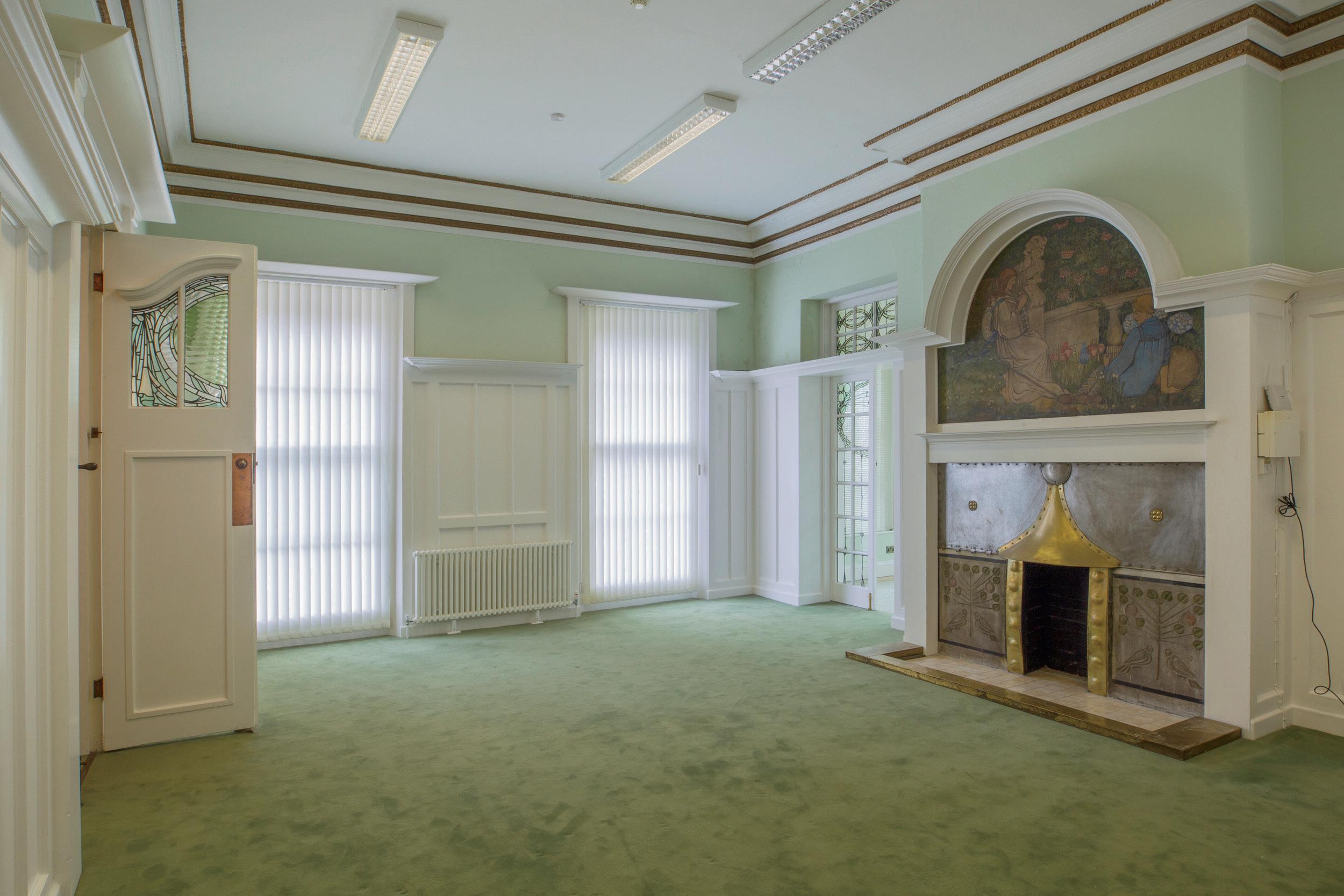 The stately entrance is supported by four grand large columns of which the double fronted doors open into an elegant entrance hall that leads to an imperial staircase which is framed by classical architectural elements of which is illuminated from the top by a skylight. The interior retains ‘sumptuous decoration’ with period features in abundance throughout including Regency plasterwork, wood panelling, and an Art Nouveau overmantel to one of the fireplaces. Two reception rooms, a wood-panelled dining room, and a generous kitchen. A conservatory was added in 1905 which grants access to the rear of the building. The outside space to the rear currently provides extensive car parking however could be converted into a walled garden to further enhance the offering. Off-street parking for four cars can be found to the front of the building.