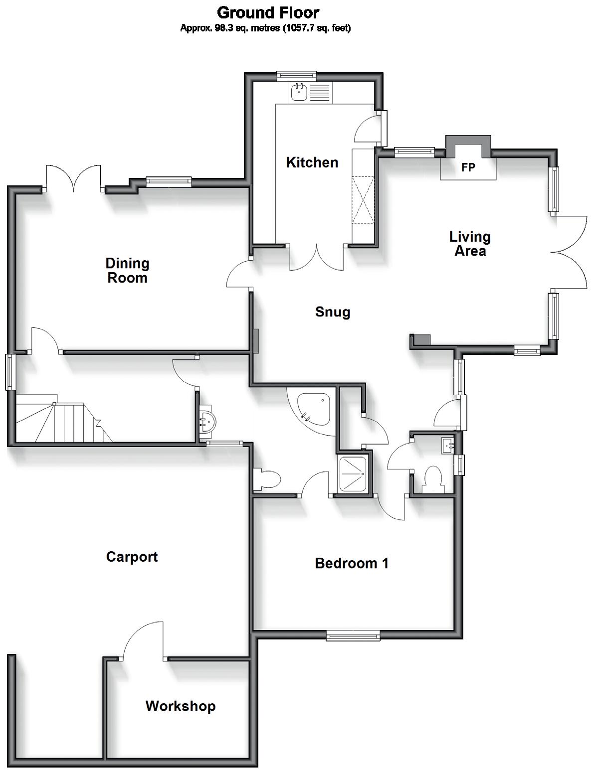 Bathroom (L-shaped) 7’9 x 5’9 (2.36m x 1.75m) plus 6’6 x 3’11 (1.98m x 1.19m)