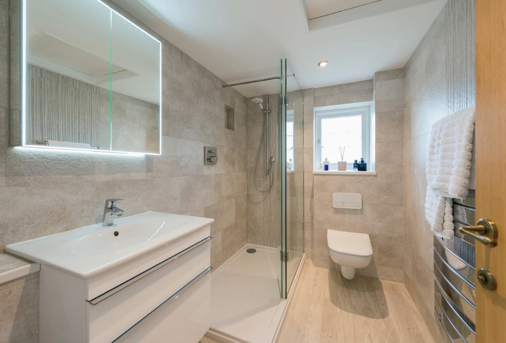 Upstairs there is a family bathroom with Villeroy and Boch sanitaryware including a lovely claw foot bath as well as three double bedrooms. One has a vaulted ceiling, cross beams, a feature brick chimney breast and fireplace, another also has a brick chimney breast and fireplace as well as a ladder to a mezzanine area which makes a great space for kids while the light dual aspect main bedroom has a wall of newly installed built in wardrobes and a Villeroy and Boch en suite walk-in double shower with access to the boarded and insulated loft.