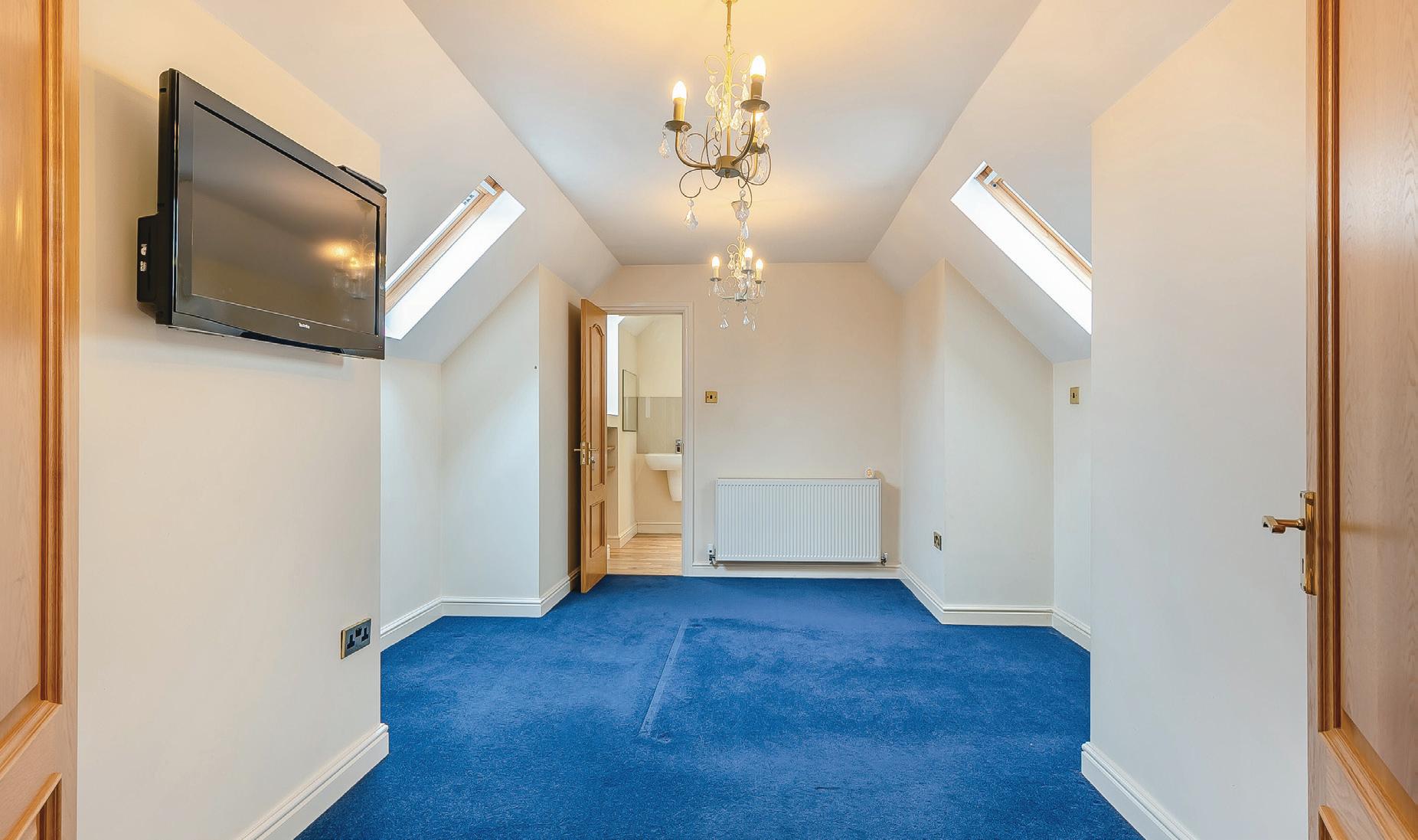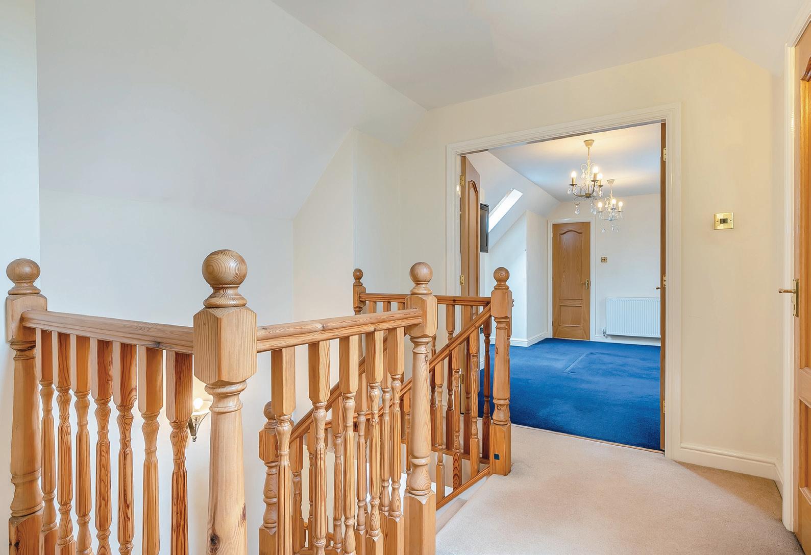 Upstairs, the principal suite provides a sanctuary of calm with walk-in wardrobes and a beautifully appointed en suite. Three further double bedrooms, two additional bathrooms, and a top-floor guest suite with a private dressing room complete the upper floors.