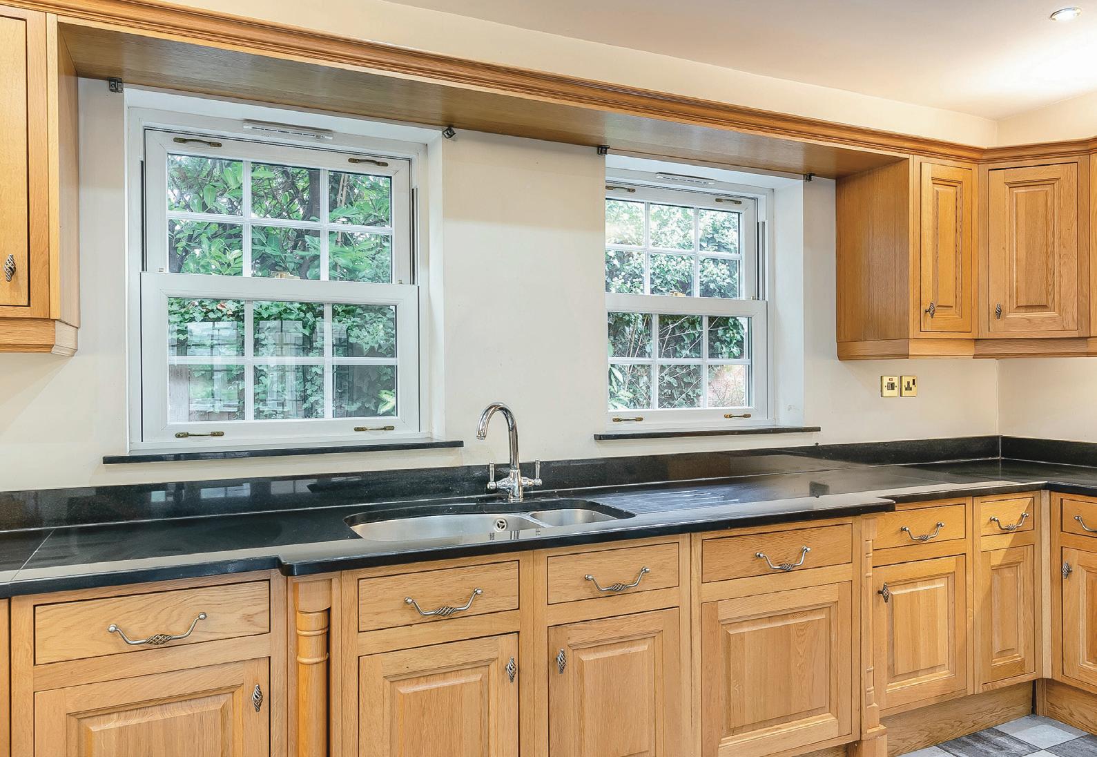 Outside, Hill House sits discreetly behind a smart walled entrance, set within a generous plot. The property enjoys beautifully maintained wraparound gardens that complement its grand proportions. Discreetly positioned on the corner of Blythe Road and Church Hill, the home is approached via a smart walled entrance opening onto a spacious gravelled driveway providing ample parking. The double garage is conveniently accessed from here and has recently been fitted with a contemporary slate-grey door to match the new front doors and the annexe and garage side doors. A wrought iron gate leads down a flight of wide steps to the impressive main entrance, framed by smart new double doors and stone pillars.