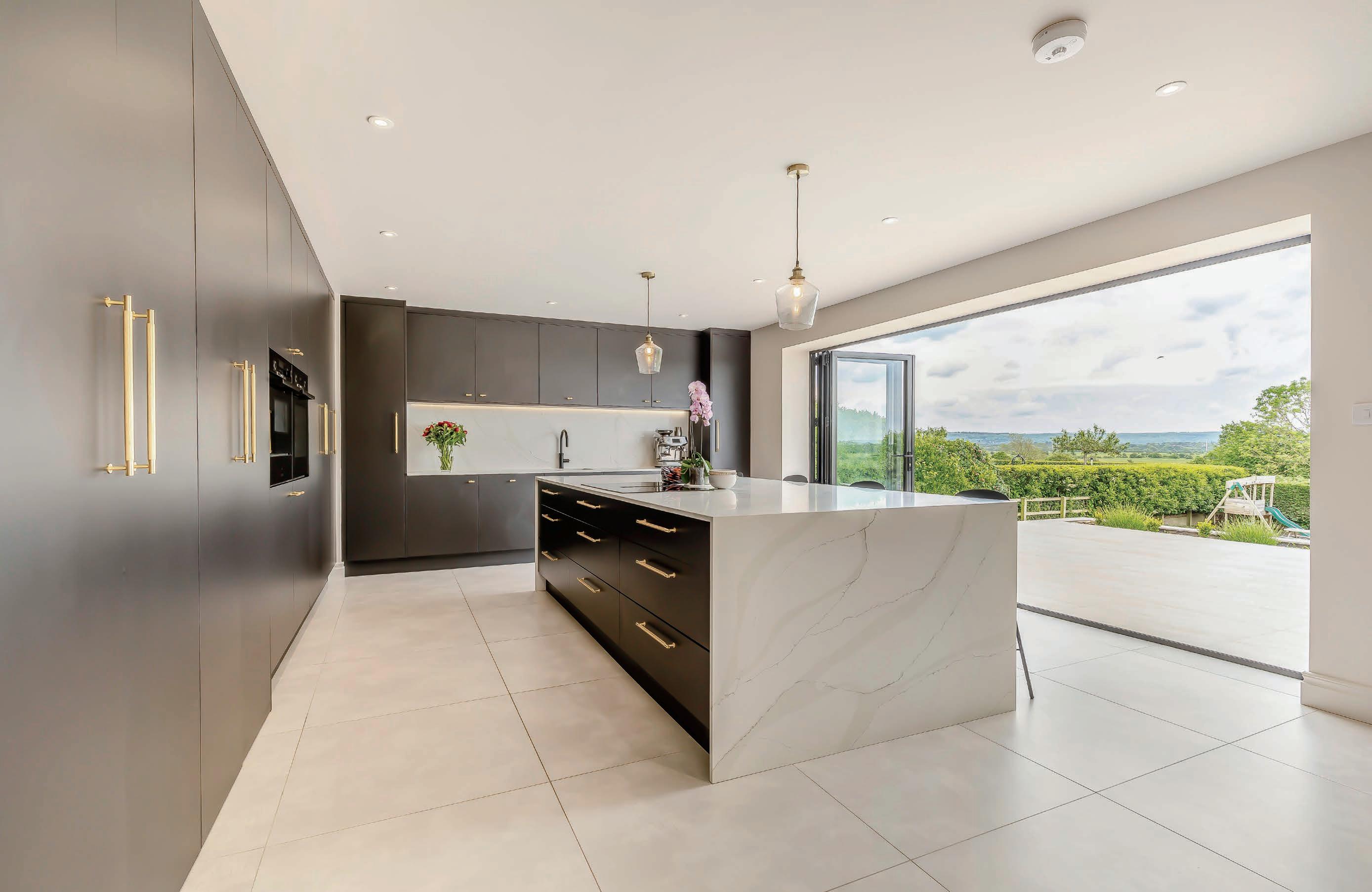 “The original bungalow was built back in the 1960s and had definitely seen better days, so in 2022 we undertook an extensive project of redevelopment. We extended up and the end result is a really beautiful and very spacious contemporary house. It was designed to have a modern look, whilst at the same time a very homely feel, and we also wanted to maximise those views so where possible we’ve incorporated huge picture windows. In terms of the layout, we wanted real flexibility so, for example, rooms that we currently use as the formal lounge, the playroom and the gym can quite easily be adapted to have different functions. We’ve also added some nice features such as the ‘hidden’ pantry and utility, and luxuries such as the huge master suite. We’re absolutely thrilled with the results of all of the hard work; it’s a gorgeous family home and it’s great for entertaining. Even in the winter months when the weather doesn’t allow us to be outside, the open-plan kitchen, dining and living space is ideal for large get-togethers.”