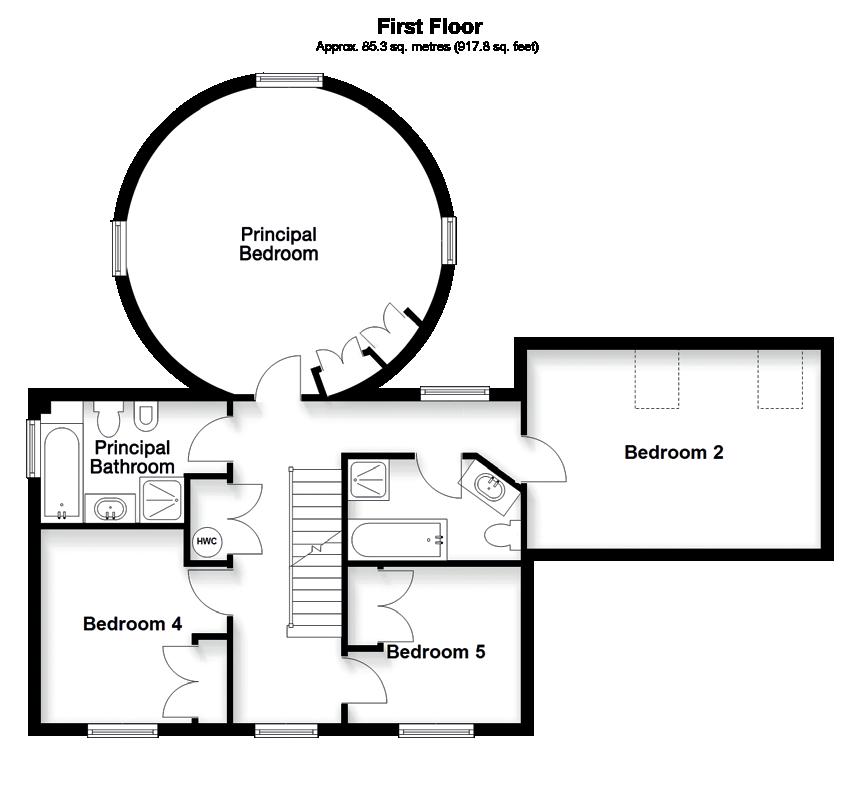 The rest of the sleeping quarters are on the first and second floor. On the first floor there is a fascinating landing with a vaulted and beamed ceiling with access to two family bathrooms with baths and separate showers and four double bedrooms including a circular triple aspect room in the roundel. While on the second floor there is another vaulted and beamed ceiling landing, including a small study area, with an arched entrance to a triple aspect circular double bedroom in the roundel with spectacular far reaching rural views.