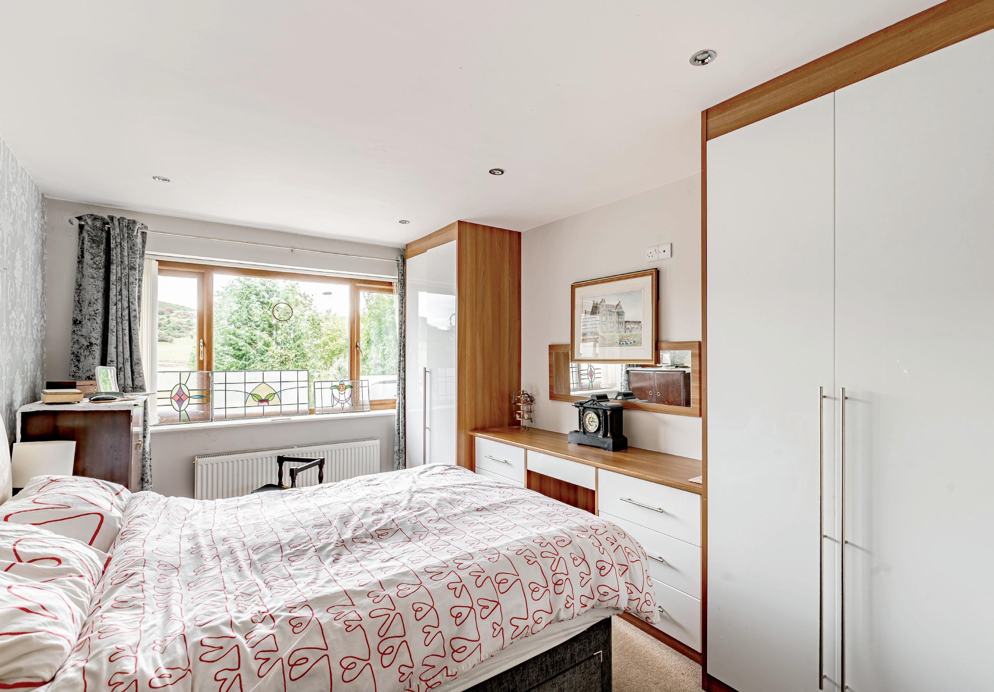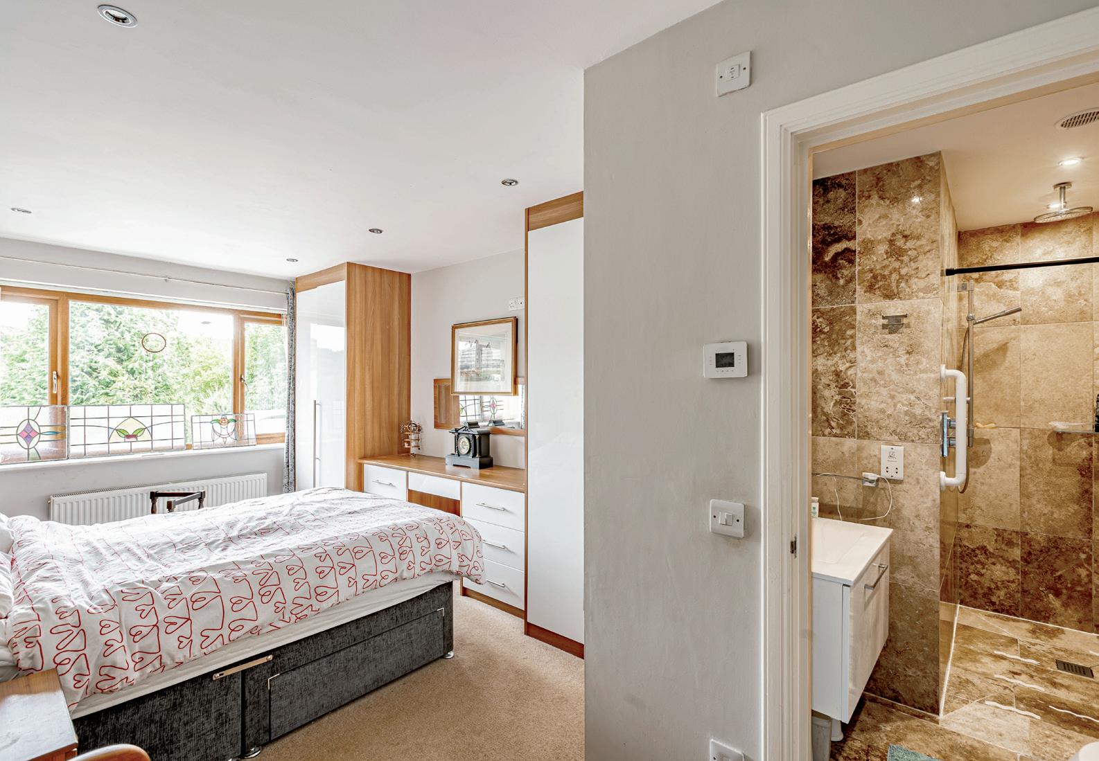The principal bedroom has a large window to the front elevation and therefore enjoys lovely views. There is a great range of fitted wardrobes, drawers and a built-in dressing table. The ensuite shower room is a contemporary wet room that is fully tiled, with generous shower area, WC and a wash hand basin set in a wall mounted vanity unit.