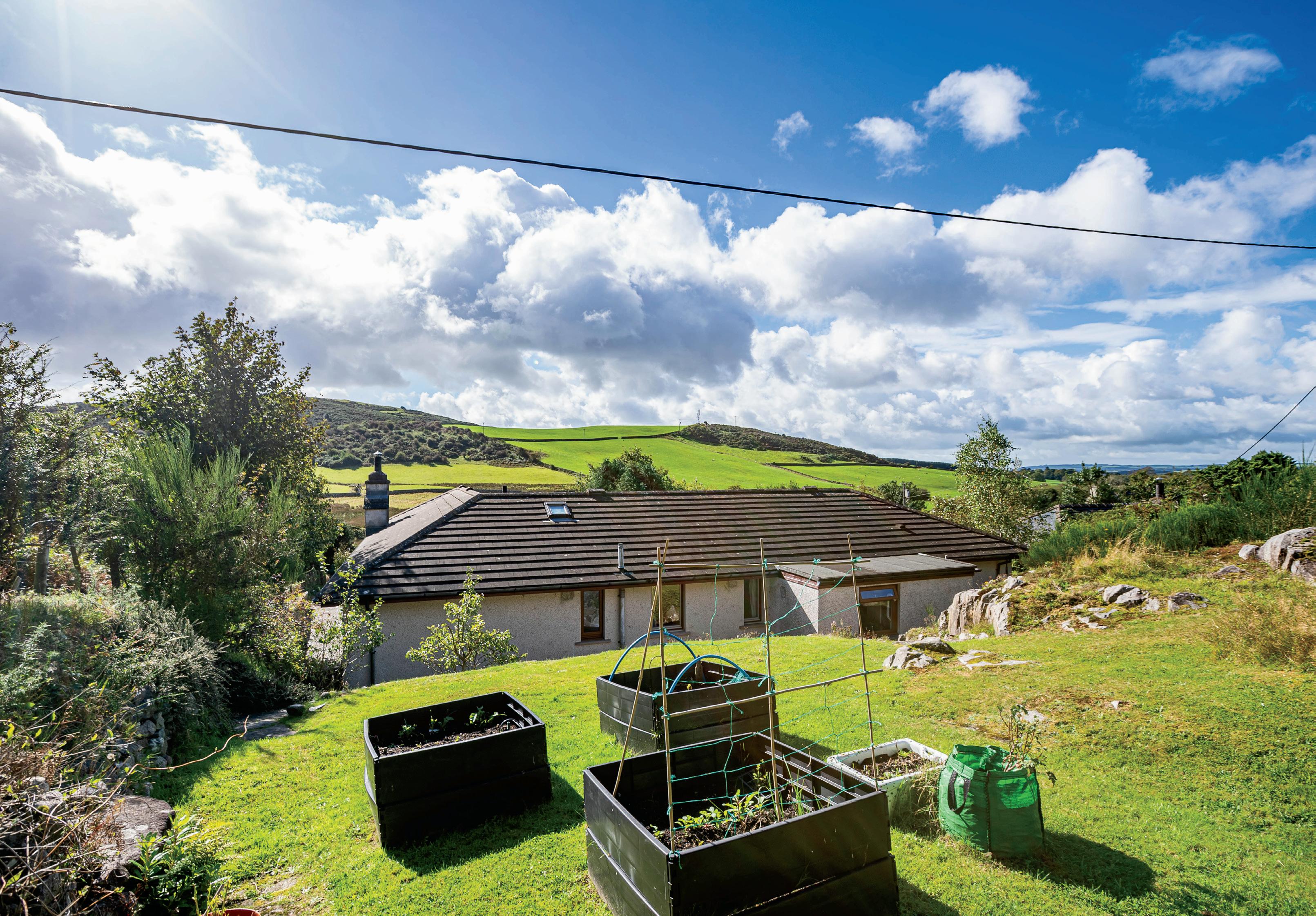 To the rear is small, paved patio area with stone steps that lead to the upper area of the garden. There is an area of lawn, raised vegetable beds and sunny areas from which to sit enjoy the excellent views over the rooftop to the surrounding countryside.
