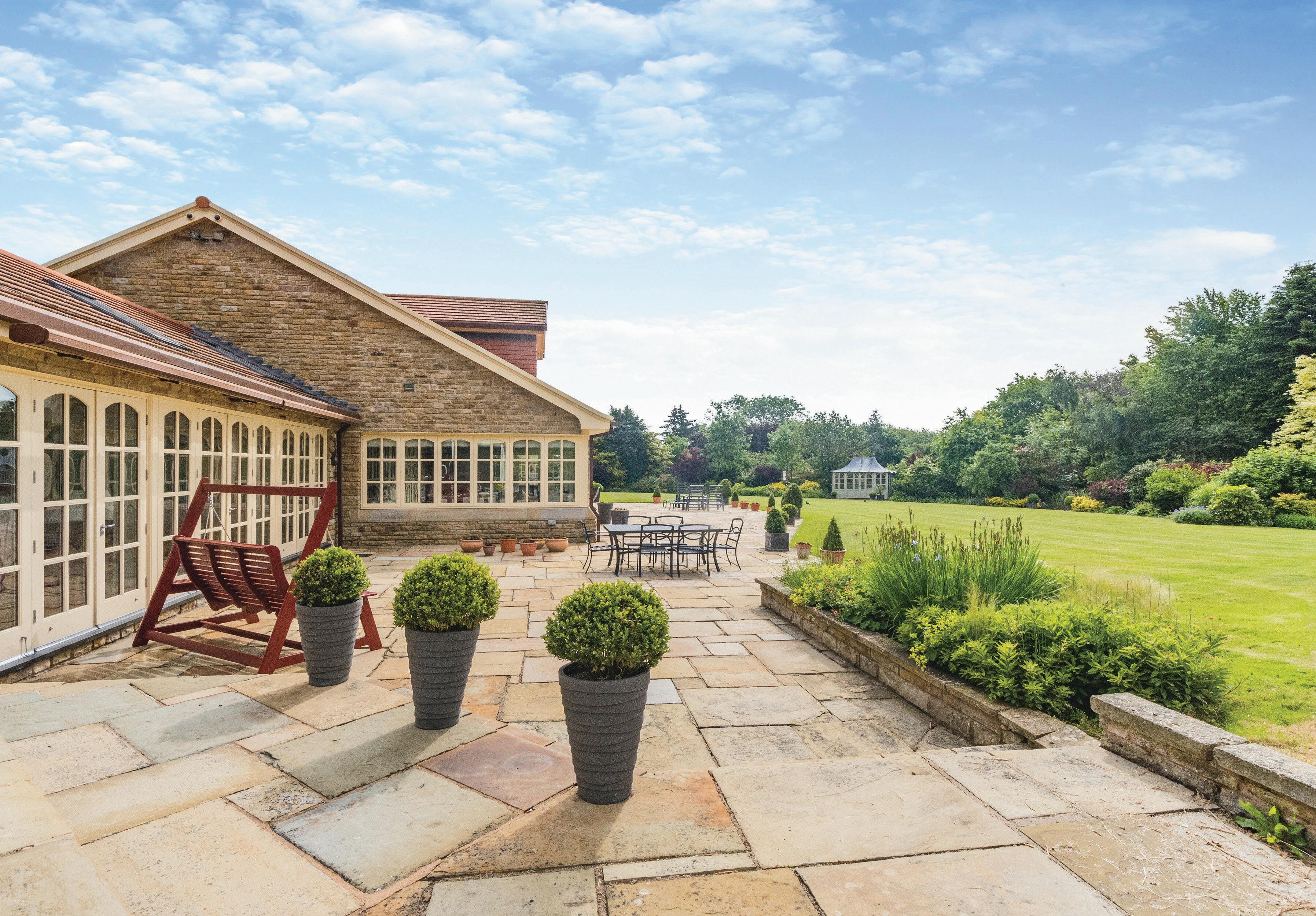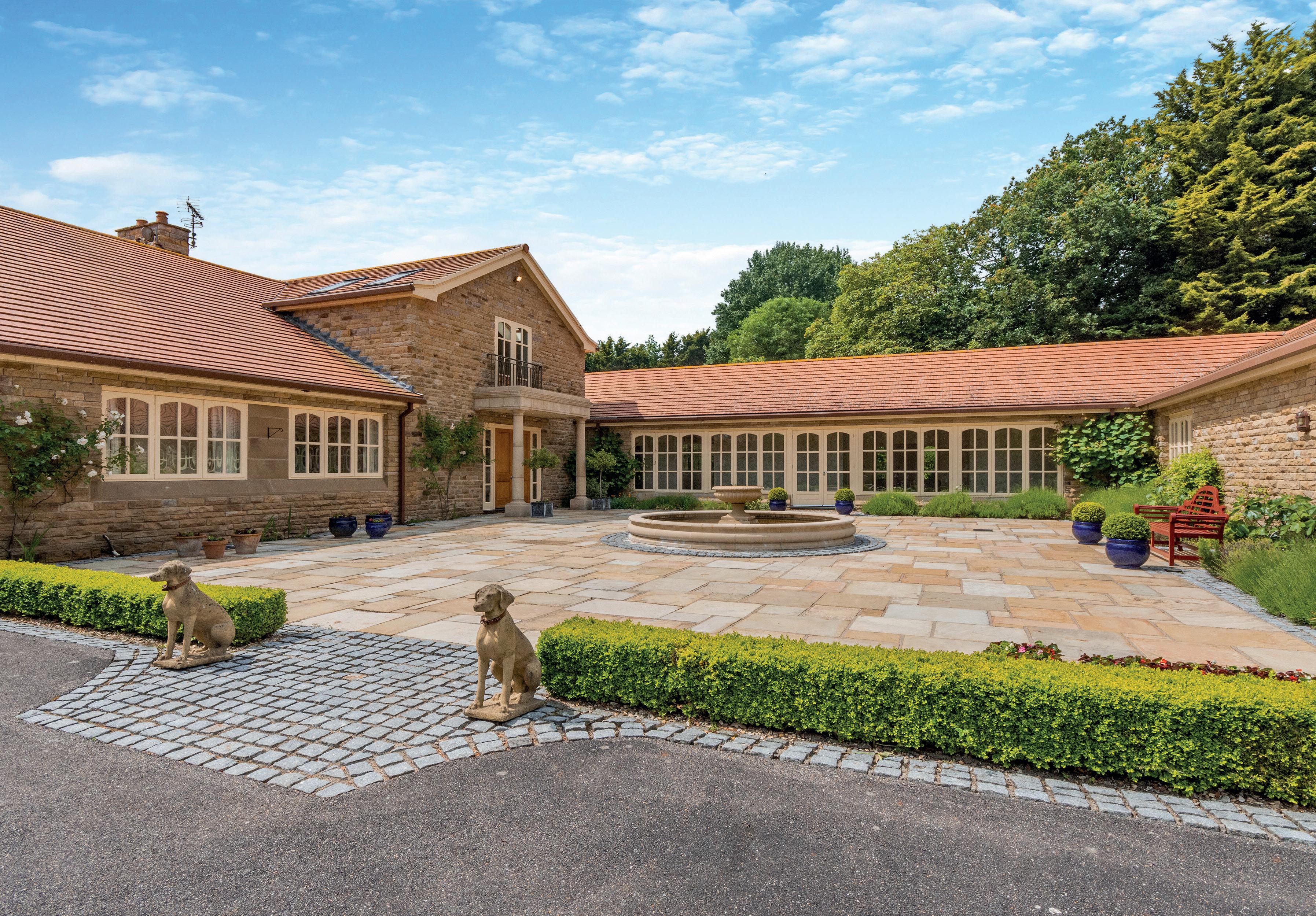 Rothwell Lodge is accessed via wrought iron electric security gates opening onto the sweeping tarmacadam driveway, flanked by generous lawns, leading to the car standing area and garages. A delightful paved courtyard giving access to the front entrance and a feature fountain.
