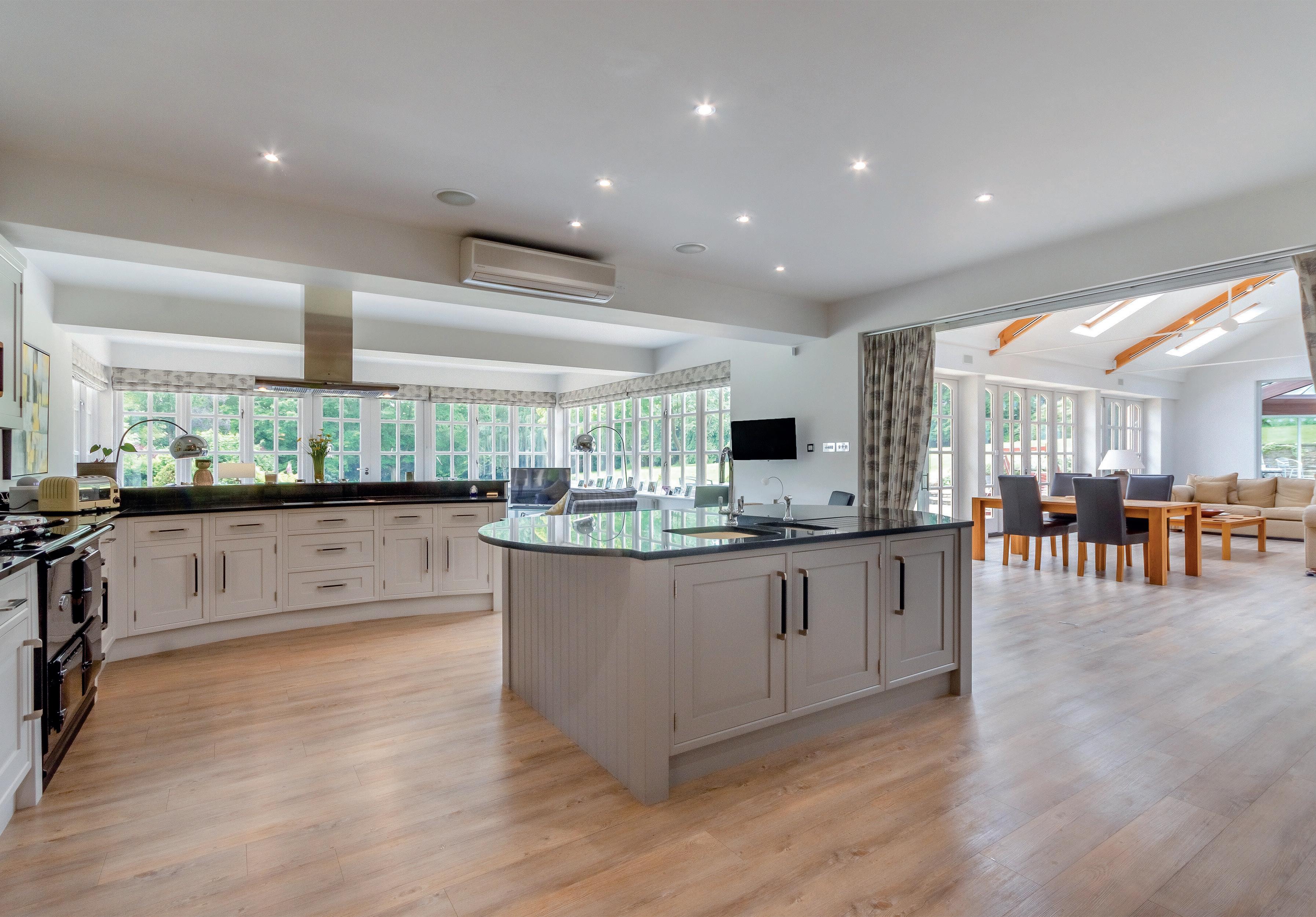 The property was originally built 50 years ago and has been the home to the current owners for the last 20 years, who have meticulously re-built and repurposed this wonderful property to now boast over 10,500 sq ft of versatile living accommodation over two floors. Families will appreciate the wealth of space on offer, with a number of modern conveniences, including CCTV, air conditioning, an integrated sound system and CAT 5 data cabling. The attentional to detail and the use of bespoke joinery within this home is sublime.