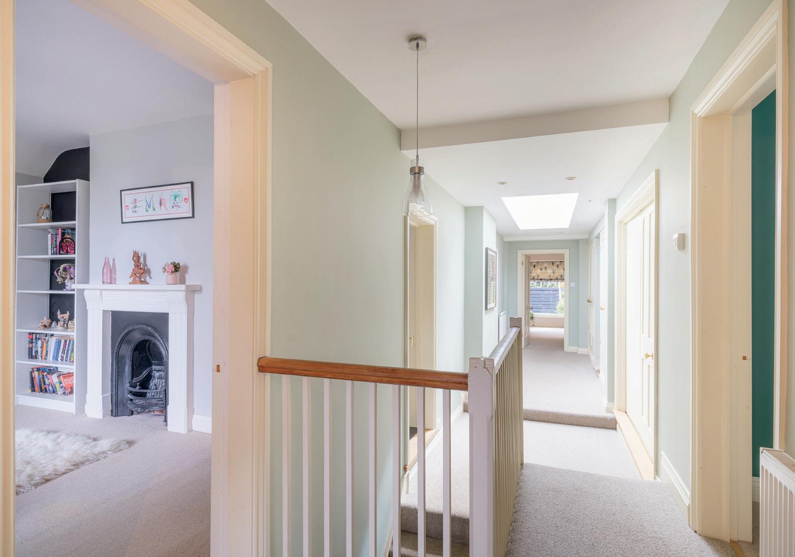 Upstairs, there are five generous bedrooms and two bathrooms. The luxury master suite extends across the rear of the house, with striking high ceilings and large windows to fully take in the beautiful garden views. The four piece en-suite includes a jacuzzi bath and a large, fitted waterfall shower. The master suite is complete with ample storage including a generous double wardrobe and a further walk in wardrobe with plenty of hanging space. The four remaining bedrooms, all of which are a superb size, have access to the two spacious bathrooms.